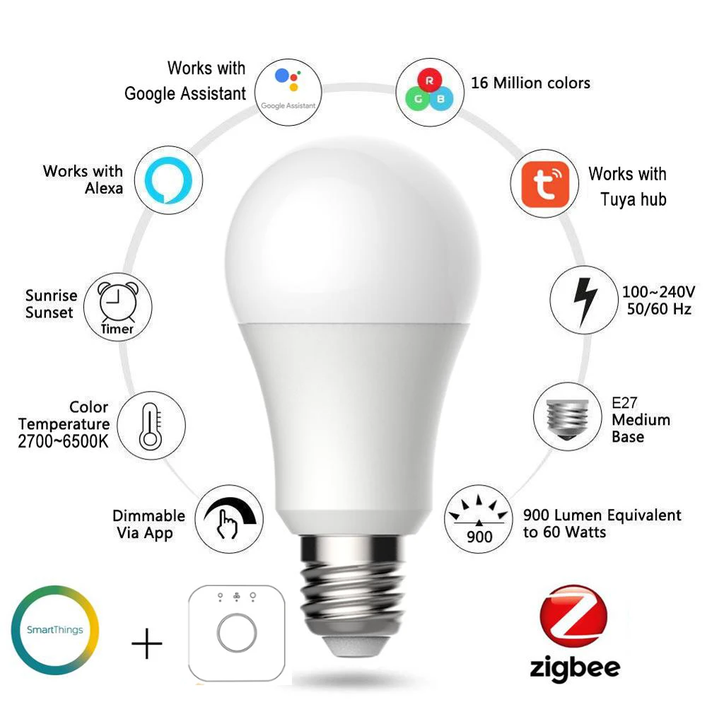 Наши умные светодиодные лампы совместимы с Amazon ECHO Plus ,H * U * E, O * sr * am,SmartThings, ikea, домашний помощник, Zigbee2MQTT ,Tuya zigbee и т. д.