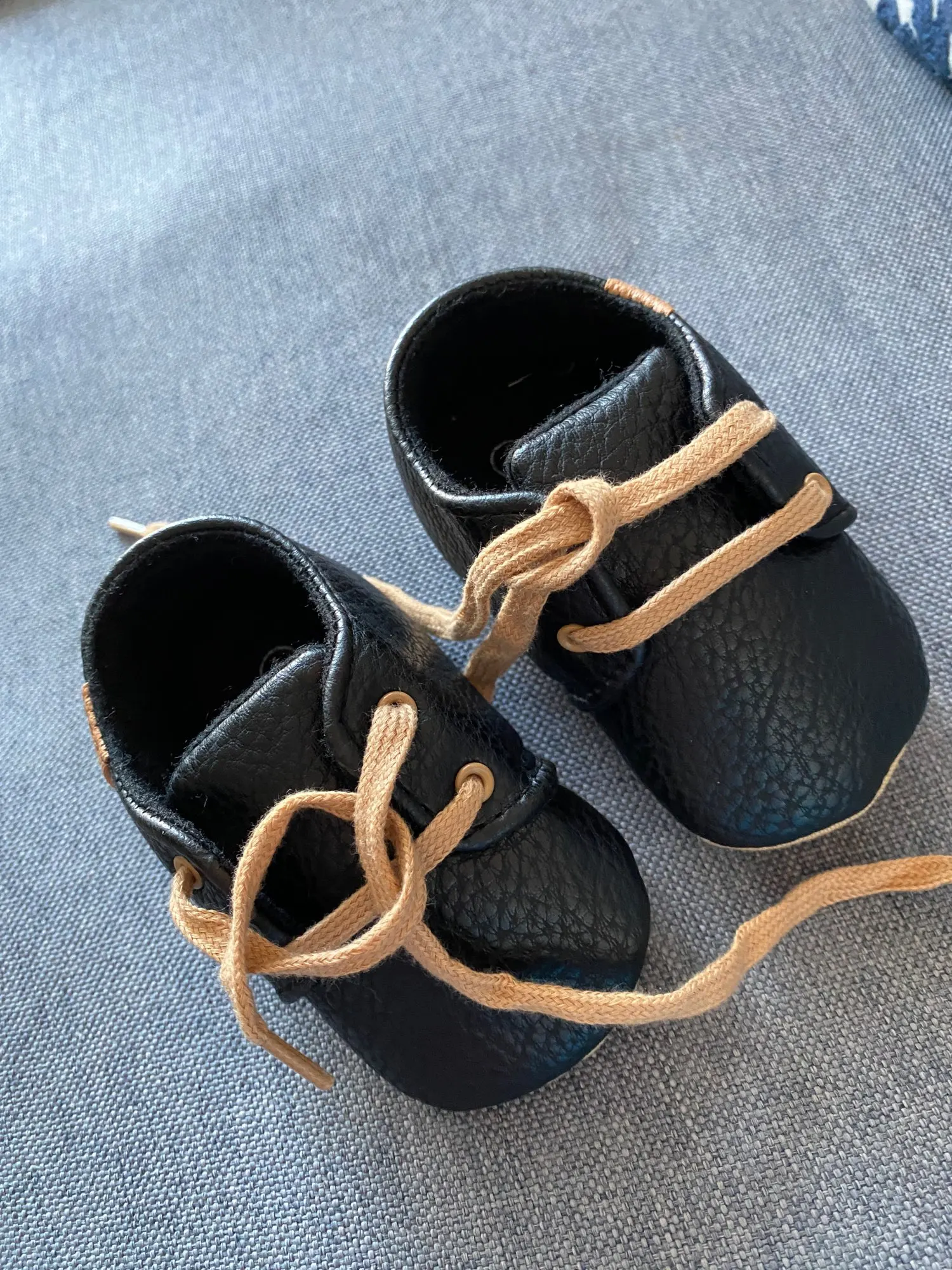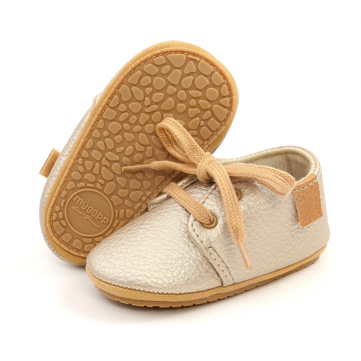 Обувь для новорожденных, в стиле ретро, однотонная, кожаная, с резиновой подошвой, нескользящая, для малышей, мокасины