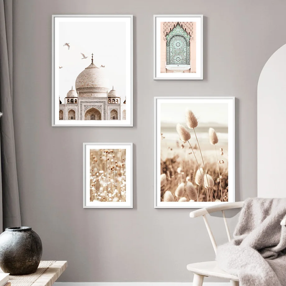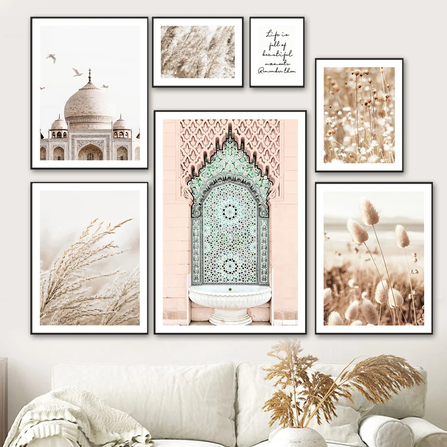 Рисунок, трава, сушеные цветы, тадж-махал, Марокко, скандинавский постер, настенный художественный принт, Картина на холсте, украшение картин для гостиной