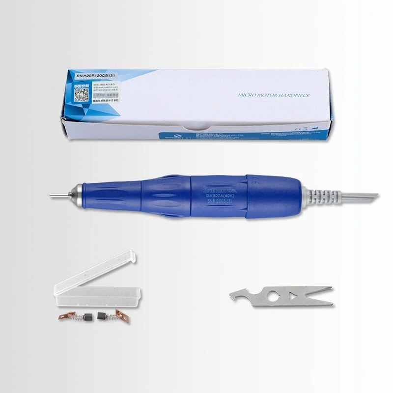 Не соответствует описанию, максимальная скорость 30 000 оборотов по часовой,в реверсе 28.000 оборотов(при тестировании ручки) при тестировании блока питания (мощность соответствует 35.000 оборотам)