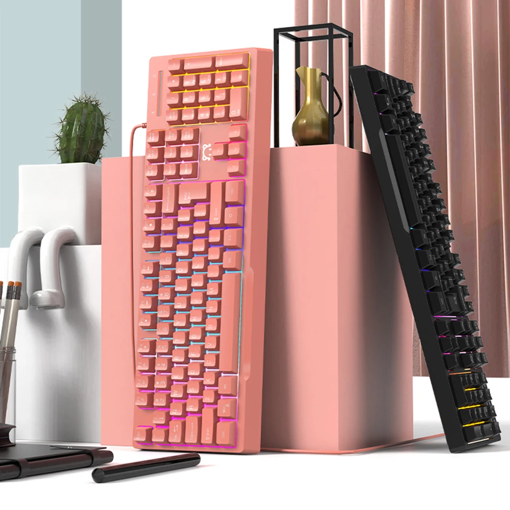 Механическая игровая клавиатура Girly Pink, проводная геймерская клавиатура с 104 клавишами, RGB-подсветка, механическая клавиатура для ПК и ноутбука