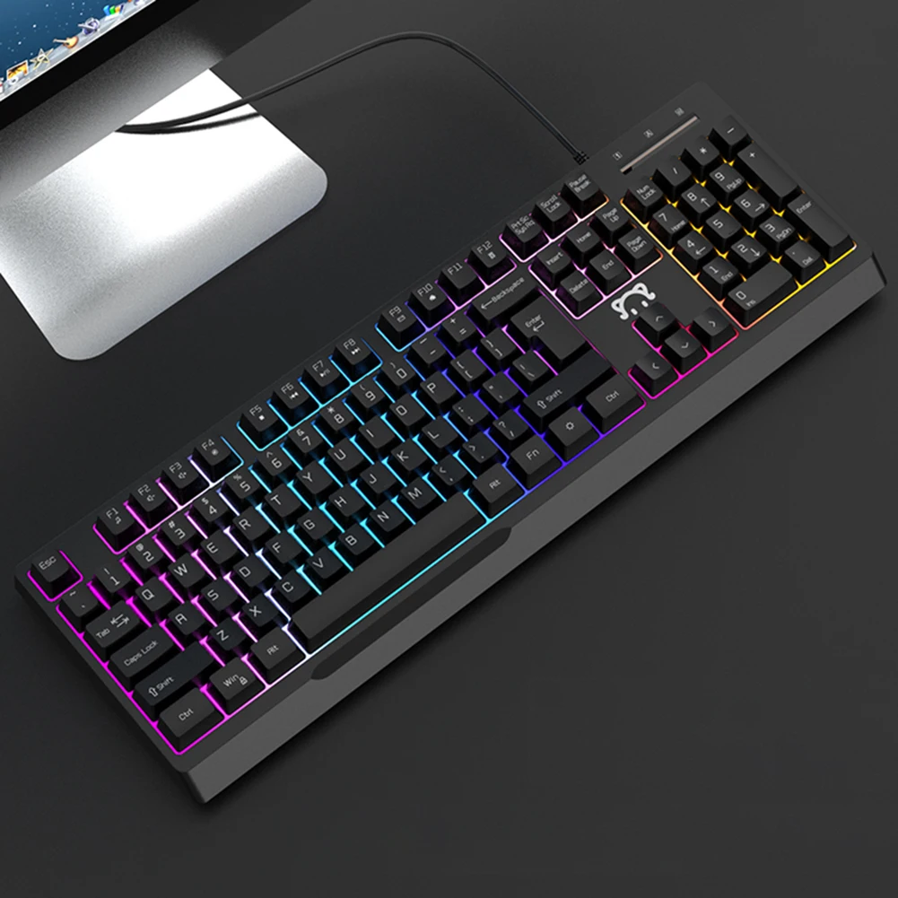 STK090 104 клавиши USB Проводная RGB подсветка Механическая эргономичная игровая клавиатура для офиса геймера