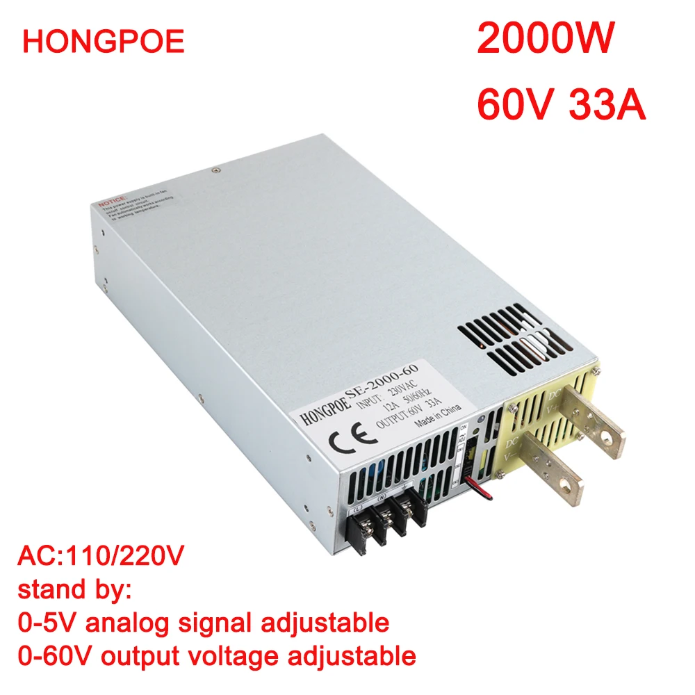 Источник питания 0-60 в, 2000 Вт, 60 в, Регулируемый источник питания 0-5 В, с управлением аналогового сигнала 220 В переменного тока на 60 В постоянного тока, высокая мощность трансформатора см