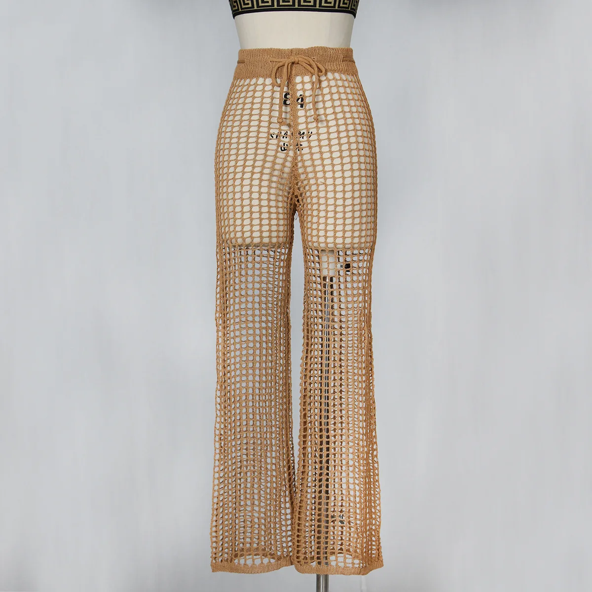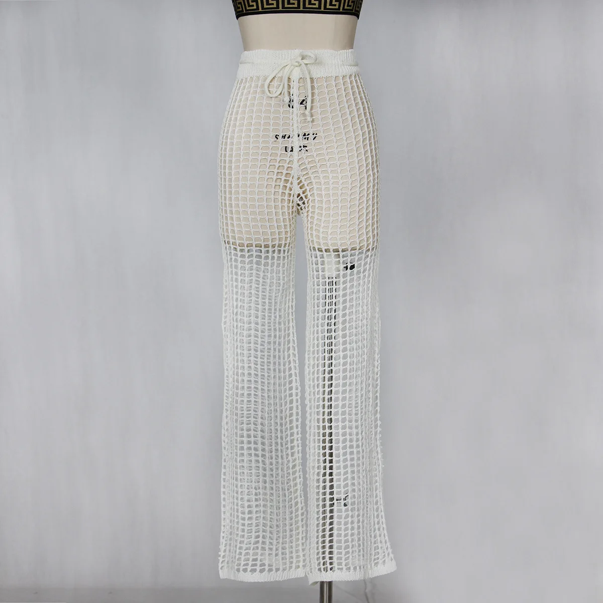 Брюки связанные крючком женская пляжная одежда брюки полые длинные вязаные брюки; Белые, черные сетчатые Короткие штаны Broeken женские Boho 2021