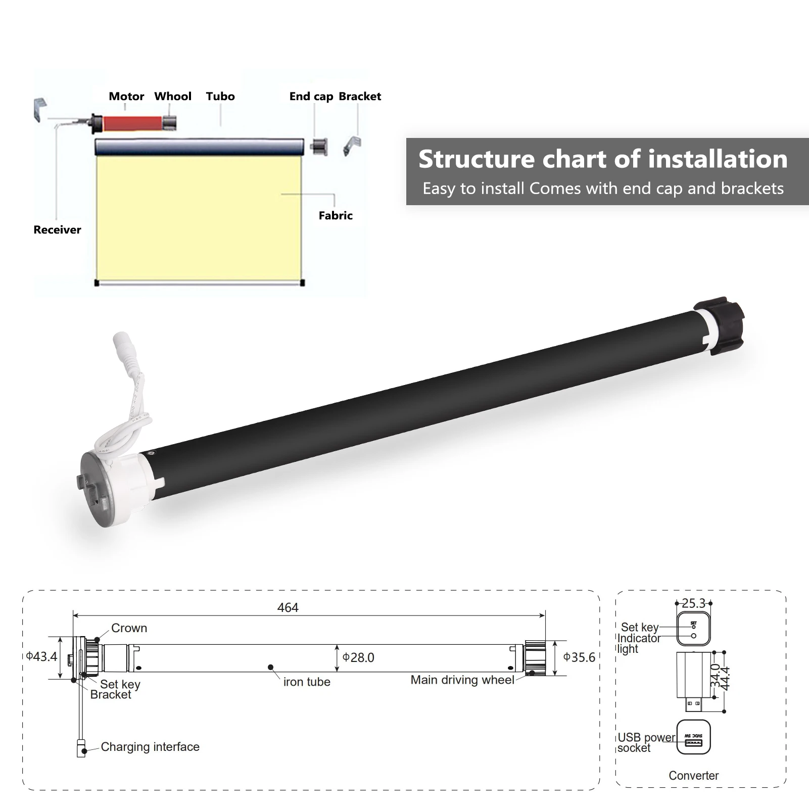 Мотор для штор Tuya, Wi-Fi, M2805EGB, для 38 мм трубок