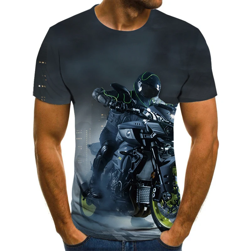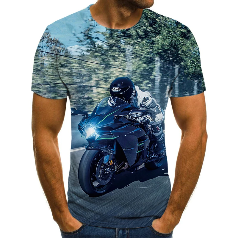 Летняя крутая футболка с 3D-принтом гоночного рисунка 2021, мотоцик...