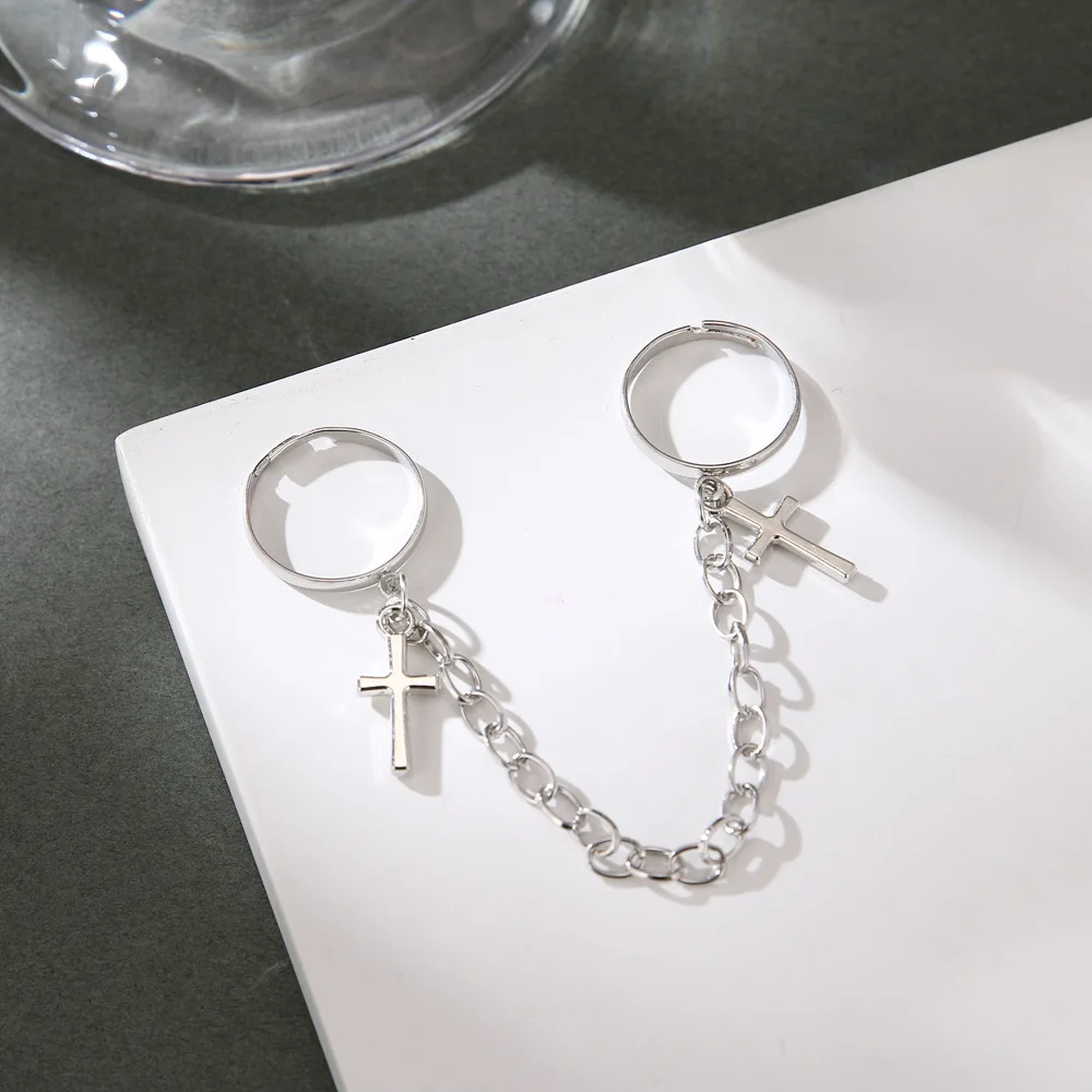 Кольцо с крестом в стиле хип-хоп для мужчин и женщин, регулируемое цепочка на палец в стиле ретро, Ювелирное Украшение для цепочка унисекс, двойное соединение