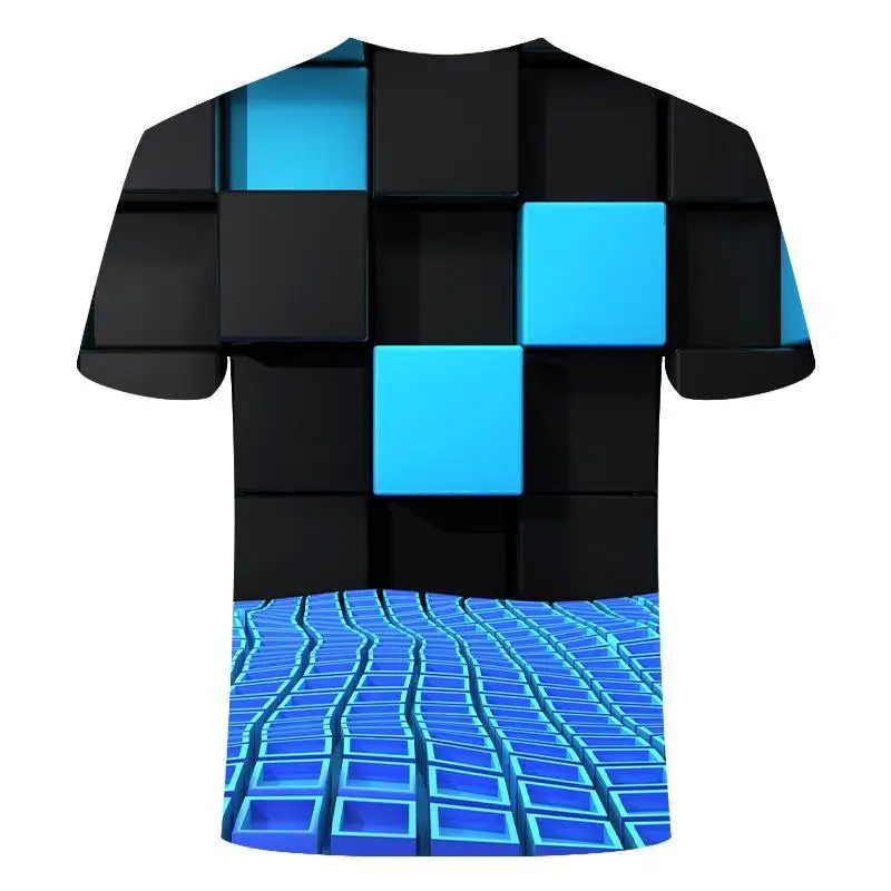 Рубашка в европейском и американском стиле для мужчин и женщин, рубашка с короткими рукавами и круглым вырезом, в стиле хип-хоп, с принтом цветных блоков, 3dt, лето