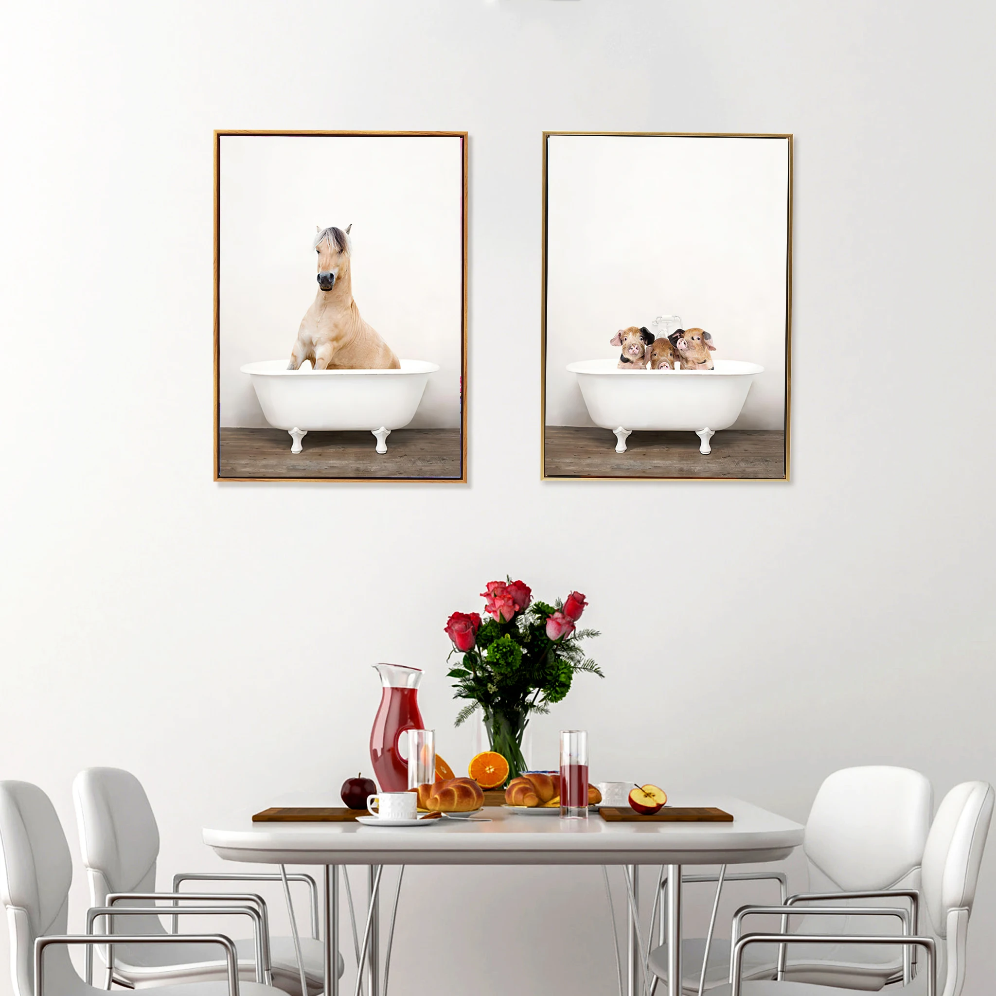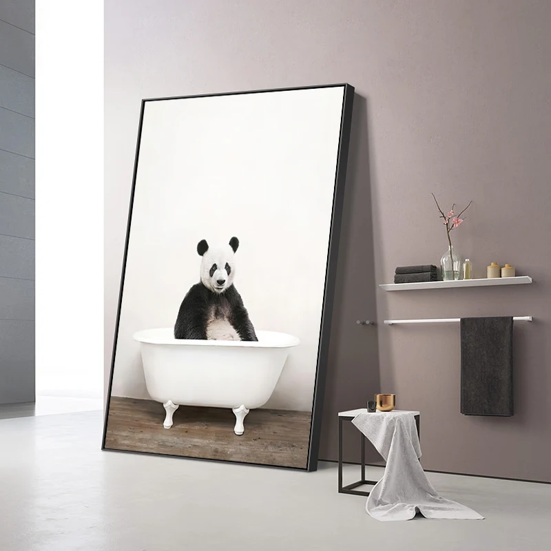 Скандинавские минималистичные животные панда слон Ванна черно-белые комбинированные художественные комбинированные украшения постер холст печать