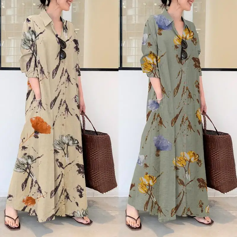 Посылка входит: 1 платьеМатериал: 65% хлопок + 35% вискозаЦвета: серый, бежевыйРазмер: S,M,L,XL,2XL,Длина рукава: полный рукавВырез: отложной воротникУзор: принт, цветыДлина: до щиколоткиТолщина: тонкаяУкрашение: боковые карманыОсобенности: разрез по краюСтиль: Досуг, богемный, ретро, ЕвропаСезон: весна, летоПрименение: семья, праздник, работа, путешествияВнимание:1. Реальный товар может немного отличаться по цвету по сравнению с изображениями на разных мониторах компьютеров. Будьте осторожны при обращении, спасибо.2. Возможна погрешность в 1-3 см из-за ручного измерения. Приносим извинения за неудобства.3. Пожалуйста, ориентируйтесь на реальный товар, изображения модели только для справки.4. Внимание! Пожалуйста, внимательно проверьте таблицу размеров перед размещением заказа.