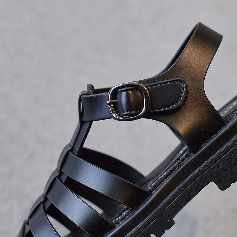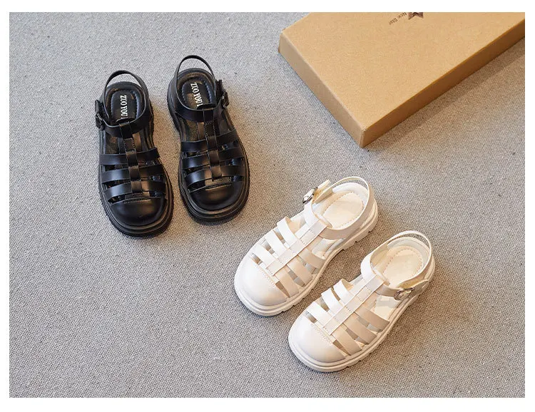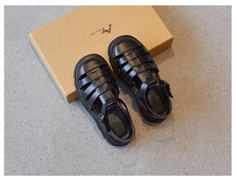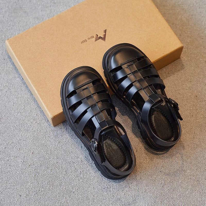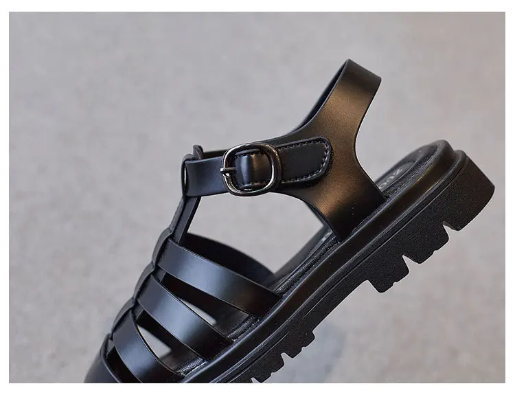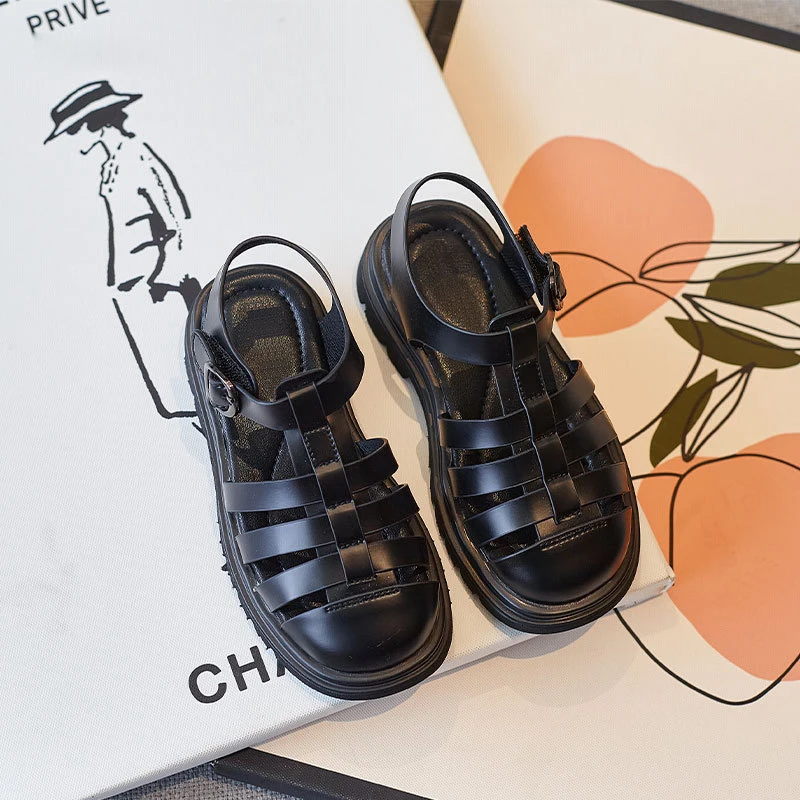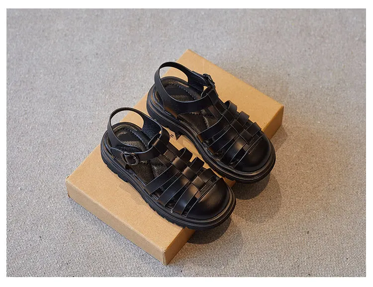 Летние детские пляжные сандалии; Мягкие сандалии принцессы для маленьких девочек; Детская брендовая обувь черного цвета; Модные модельные сандалии; Сандалии-гладиаторы