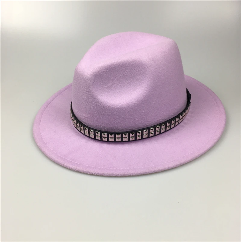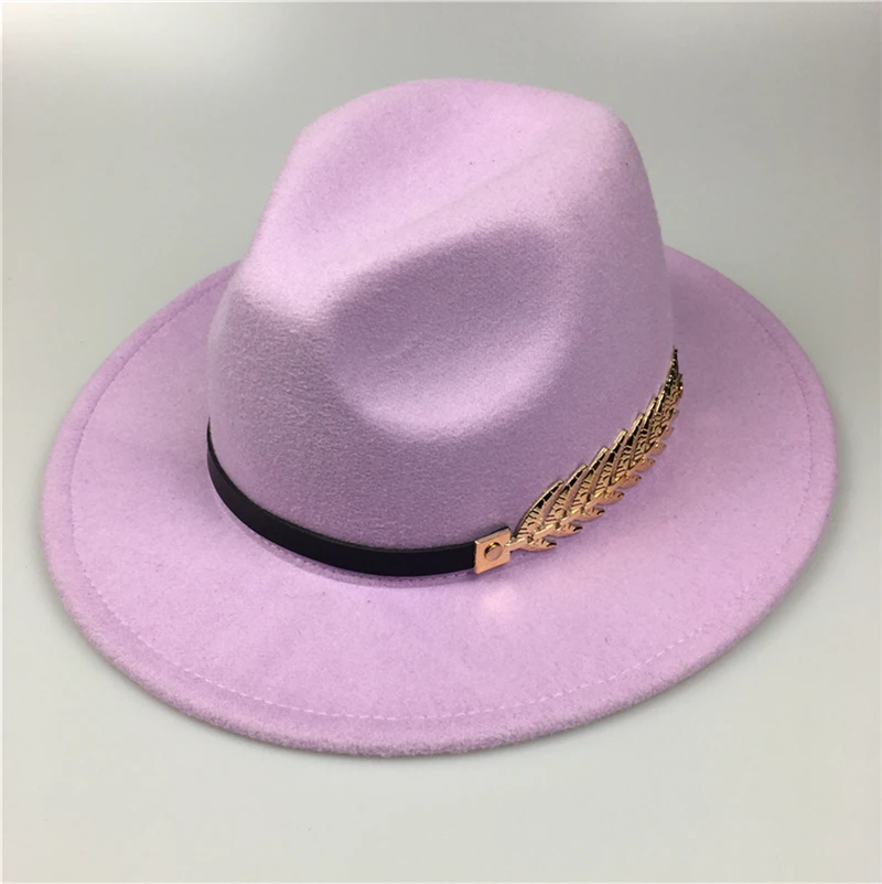 Лидер продаж светильник-фиолетовая шерстяная фетровая шляпа, женские Полосатые Ретро шляпы с плоскими полями, прямая Мужская Женская Мужская джазовая шляпа, Панама