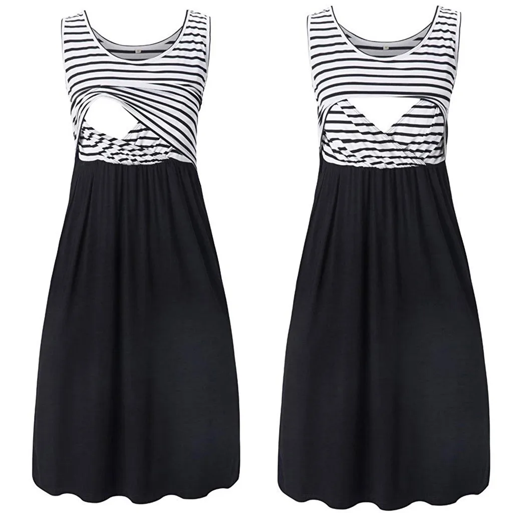 Полосатые Лоскутные Платья Для беременных Женщин Грудное вскармливание без рукавов летнее платье Для беременных