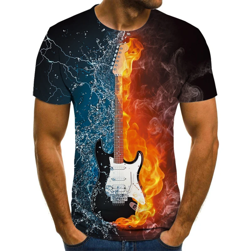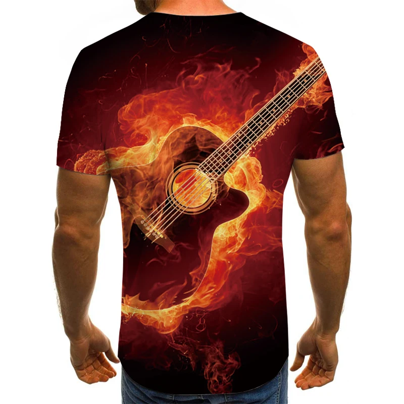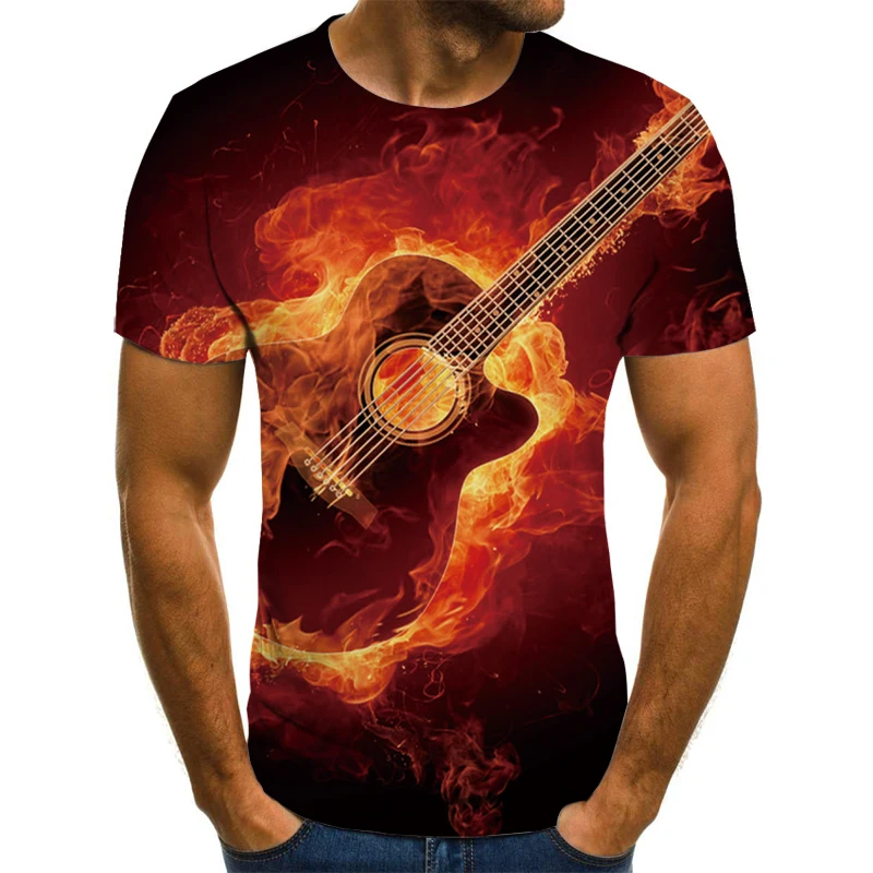 Новая футболка, Мужская футболка с музыкальным символом, футболка с 3d-гитарой, с принтом в стиле готического аниме, футболка с коротким рукавом 110-6XL