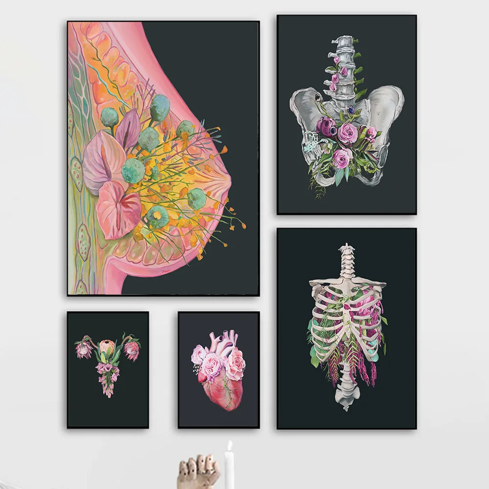 Картина на холсте, анатомическая живопись, грудь, сердце, таз, грудная клетка, матка, постеры в скандинавском стиле, настенные картины для офиса врача