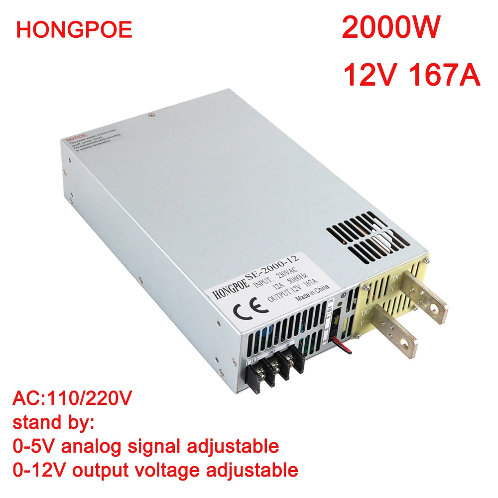 12V источник питания 2000w 0-5V с управлением аналогового сигнала 0-12v Регулируемый источник питания 110V 220V AC к DC 12VDC трансформатор светодиодный драйвер