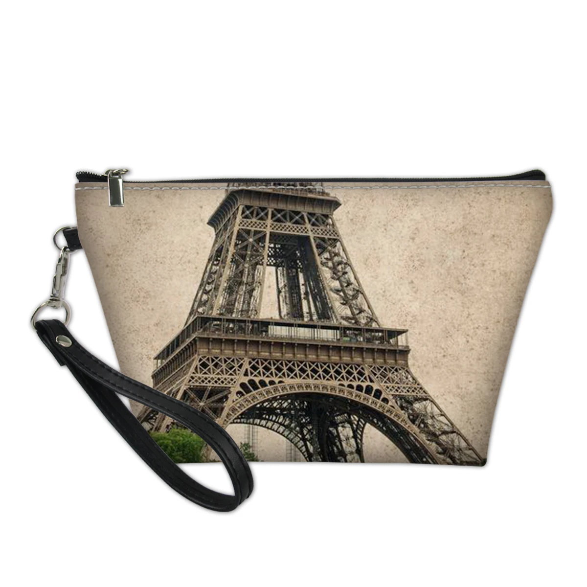 Забавная Эйфелева башня с 3D принтом, Маленькая женская косметическая сумка для макияжа, несессер, кожаная дорожная портативная косметичка, наборы туалетных принадлежностей