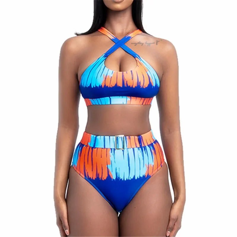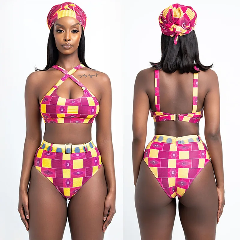 Африканский комплект бикини с высокой талией, женский купальник из 2 предметов с вырезами и Индийским народным принтом 2021, пляжный купальный костюм с лямкой через шею