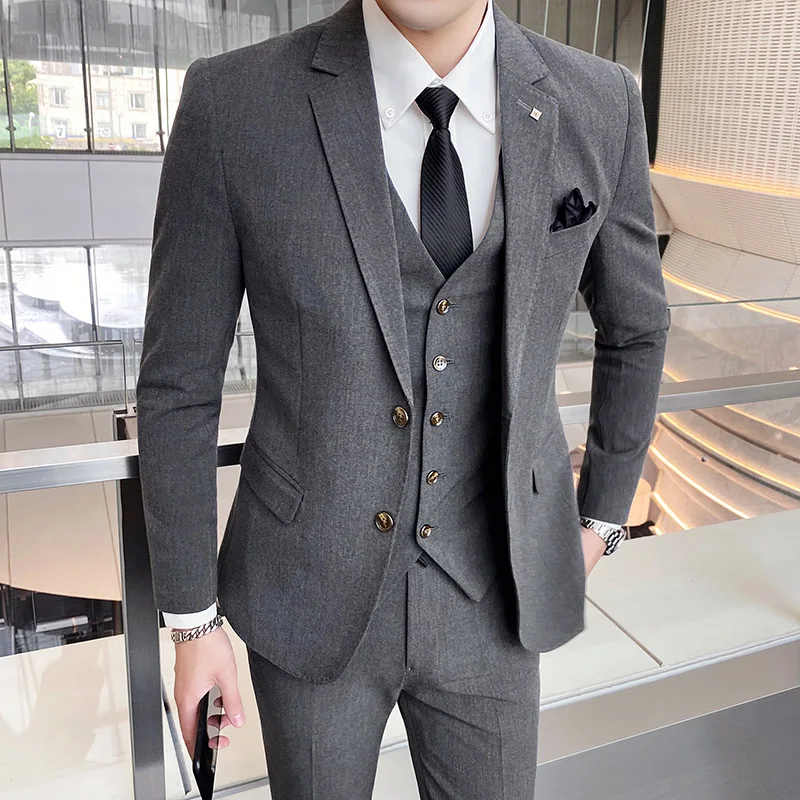 (Пиджак + жилет + брюки) высококачественный деловой мужской костюм для жениха свадебное платье однотонный смокинг сценическое выступление 3 шт. в комплекте
