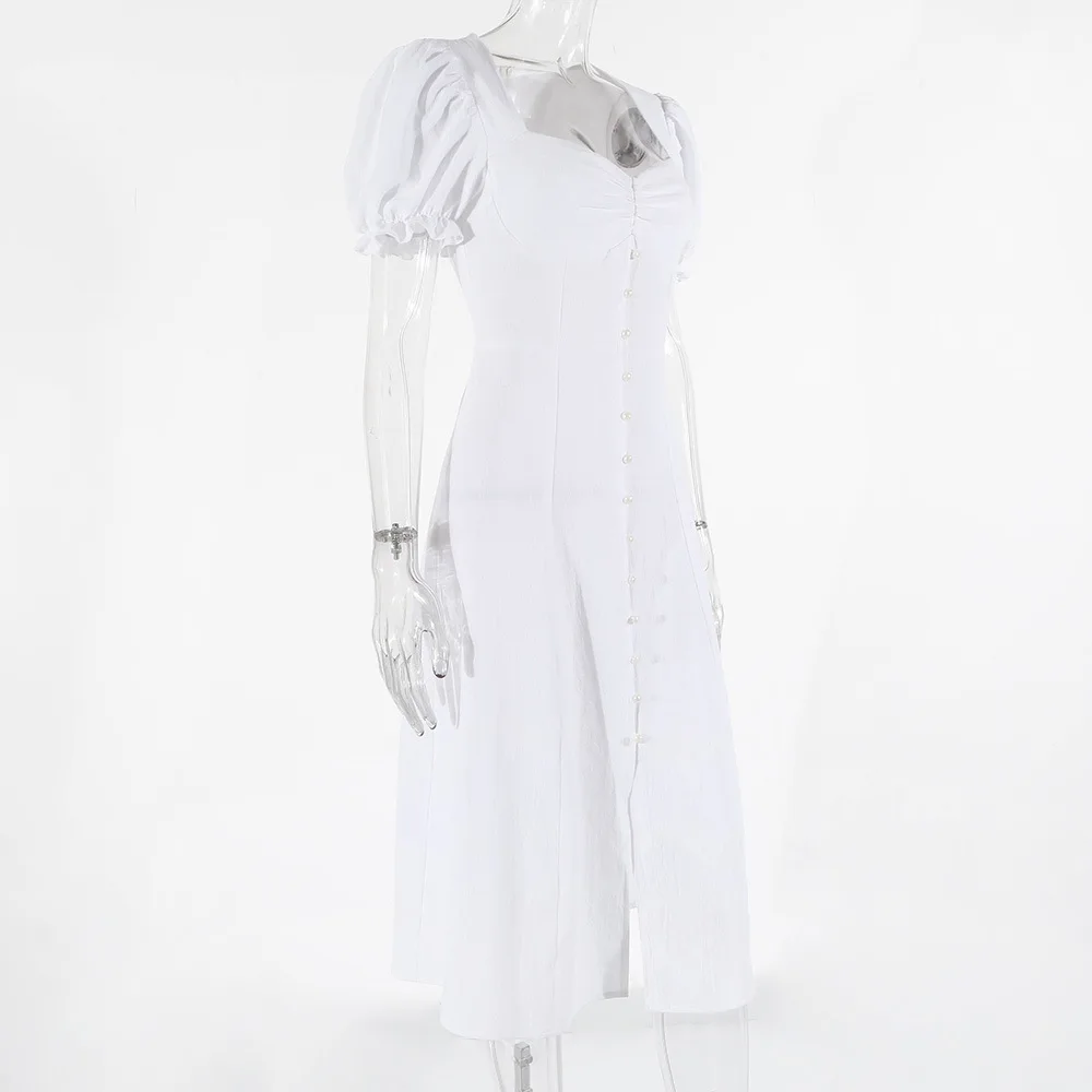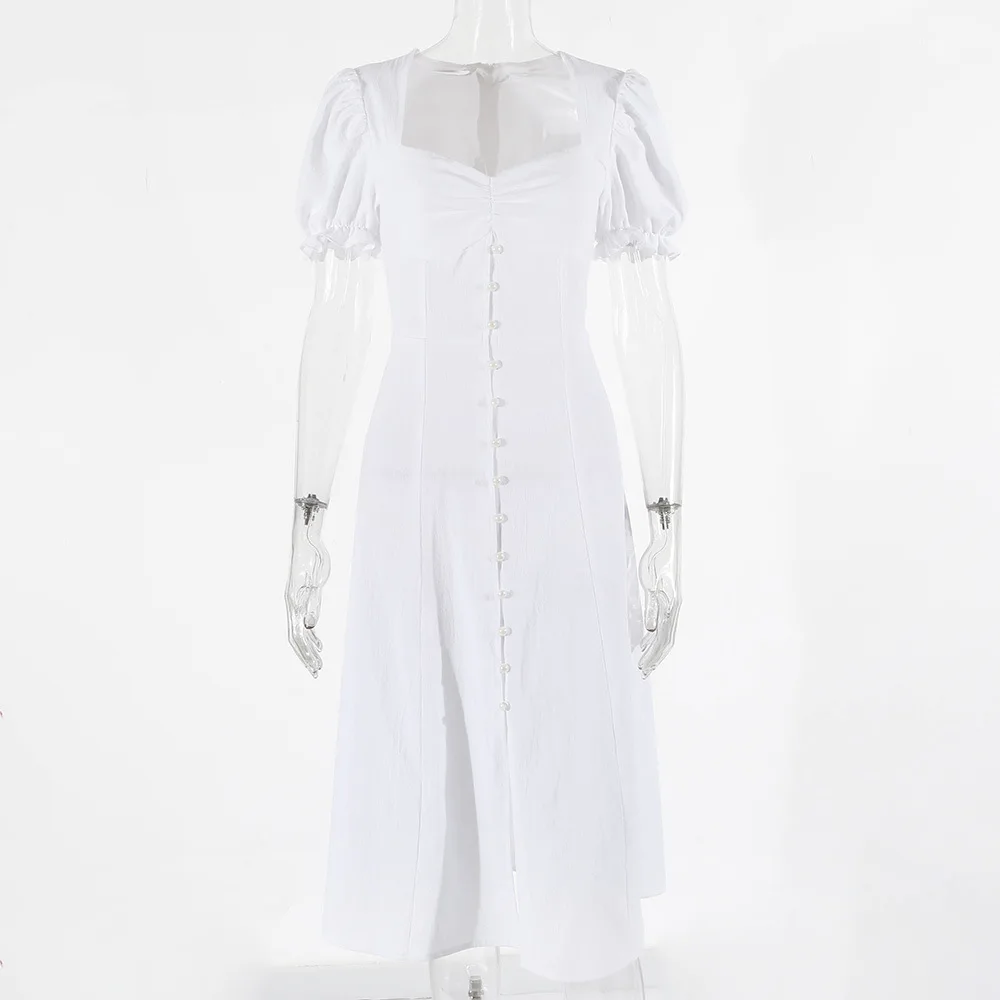 Женское длинное платье-корсет на пуговицах, элегантное платье с коротким рукавом-фонариком и квадратным вырезом, сарафан для отпуска, уличная одежда, Новинка лета 2022