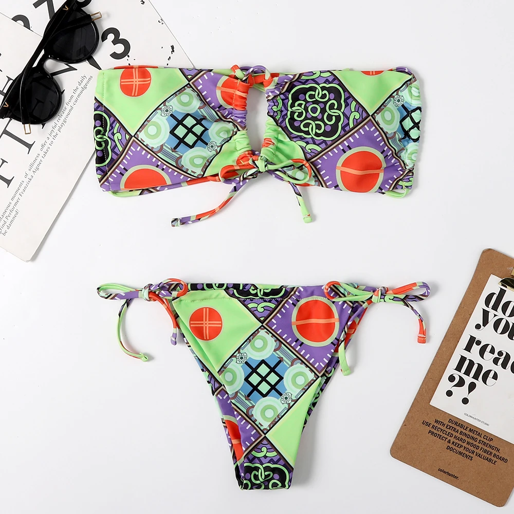 Сексуальное бандо с винтажным принтом бикини пуш-ап с винтажным принтом купальники женские бикини Maio Mujer Banador Monokini