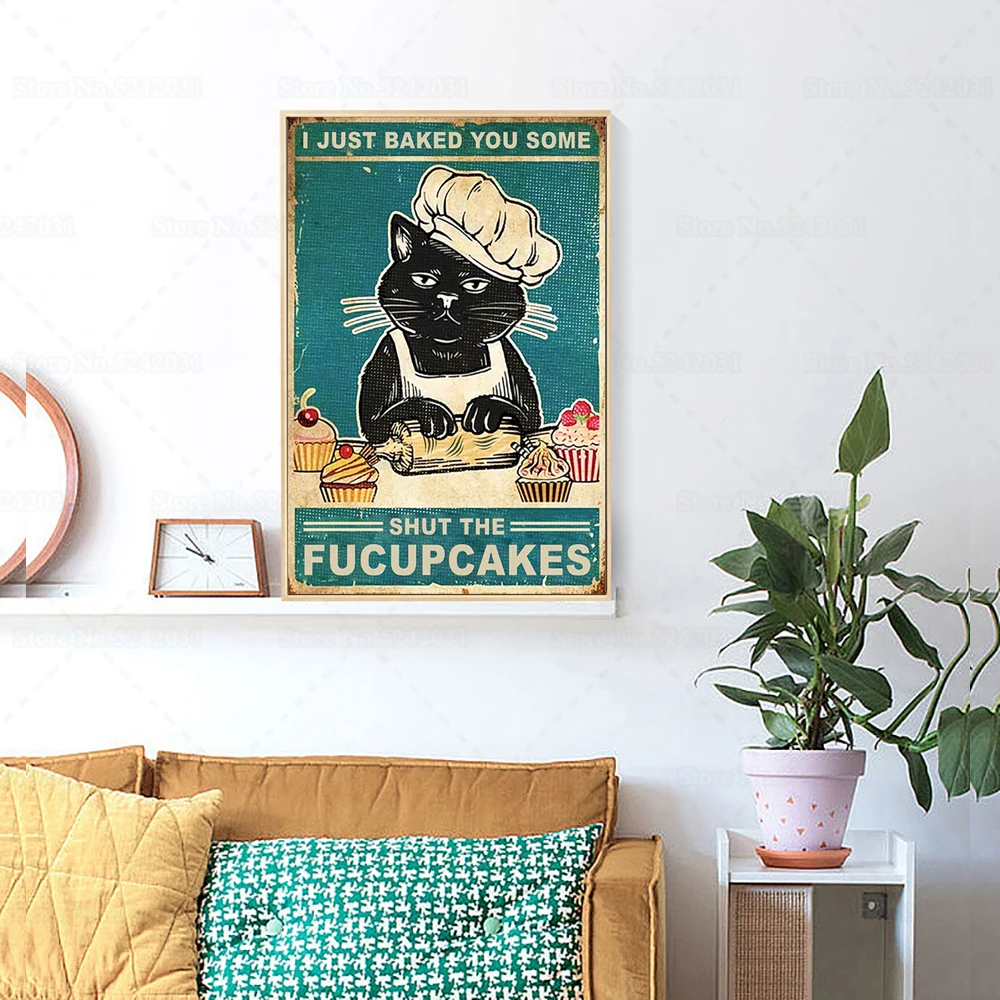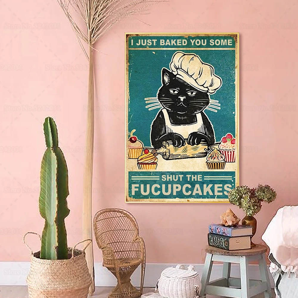 Vintage Black Cat Poster I Just Baked You Some Shut The Fucupcakes