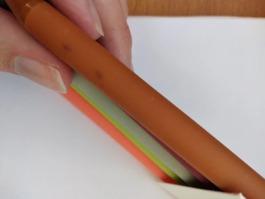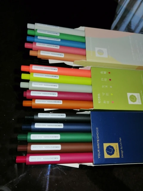Ручка гелевого чернил, жидкость, чернила не режут при использовании, пластик очень приятный на ощупь, это маленькие карандаши, которые подходят к руке, он не проходит через лист чернил, вы видите только тень сзади, хорошо Упакованные в сумки, они прибыли в идеальном состоянии, Цвета не соответствуют цвету браслета карандаша, но они все еще довольно милые, очень хорошая покупка прибыла раньше, чем предусмотрено в Сантьяго-де-Чили, по почте из Чили.