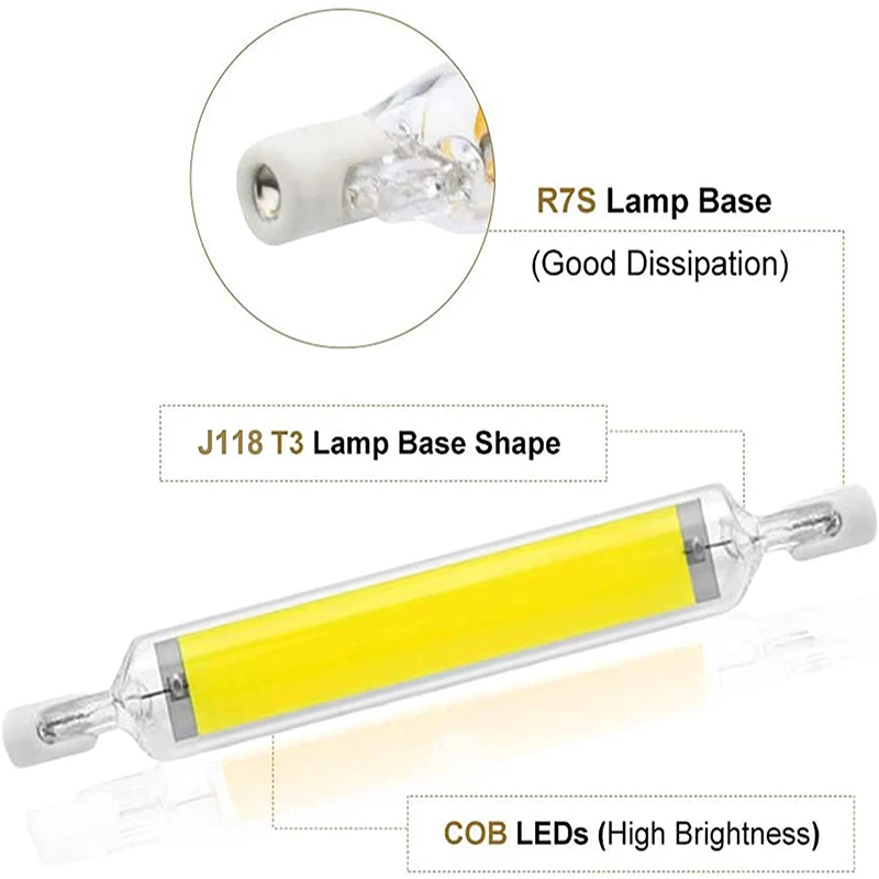 Сверхъярсветодиодный светодиодная стеклянная трубка R7S COB 78 мм 118 мм J78 J118 COB светильник почка AC 110 В AC 220 В домашняя сменная галогенная лампа