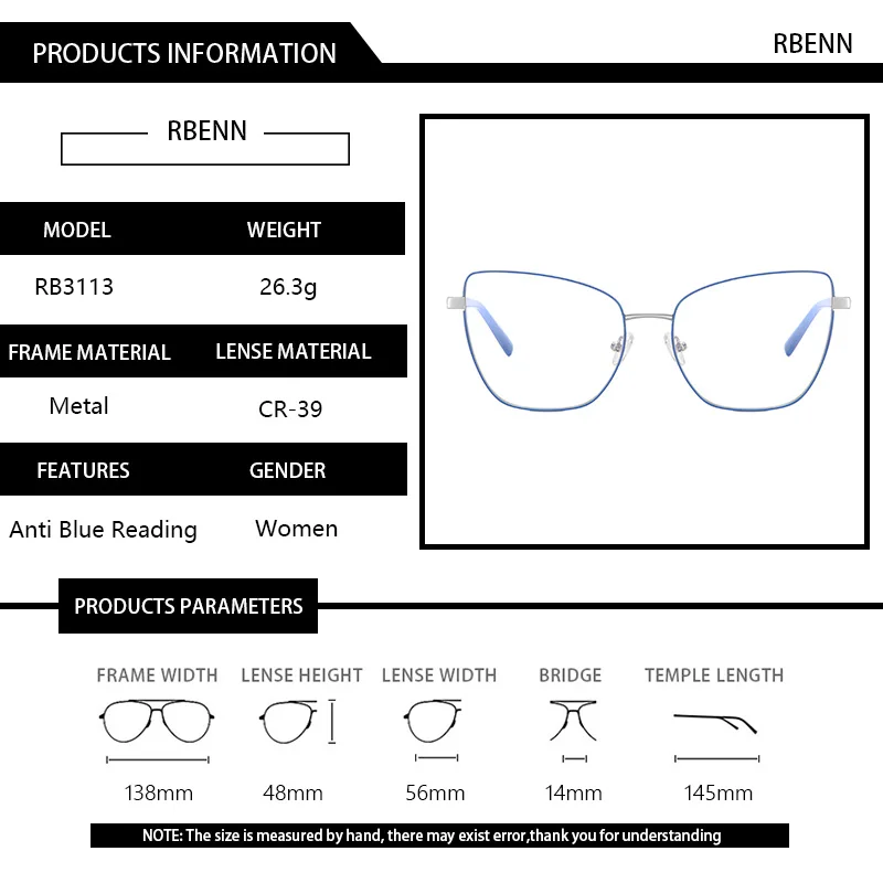 Очки для чтения RBENN в металлической оправе женские, с защитой от сисветильник, формы кошачий глаз, с CR-39 линзами, с диоптриями + 2021, + 1,75, + 2,75, + 4,5, + 5,0, + 6,0