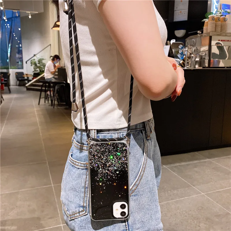 Для Samsung A70 A50 A20 A10 A31 A51 A71 A21S A12 A42 A72 Блестящий ремешок шнур цепочка ожерелье ремешок чехол для переноски