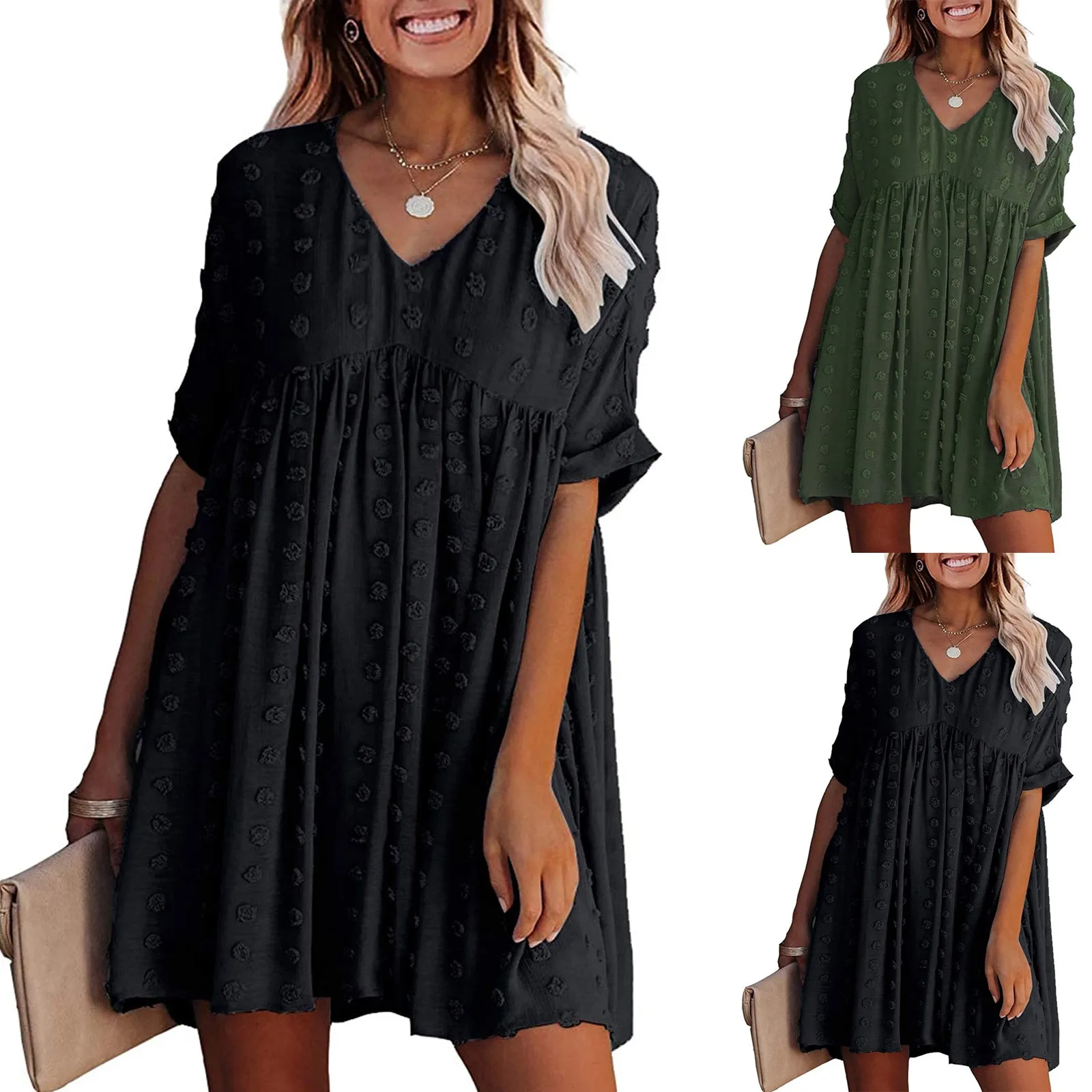 Платье женское Сетчатое в горошек, Пляжное однотонное в стиле бохо, с высокой талией и V-образным вырезом, праздничные винтажные платья с коротким рукавом, 4 #