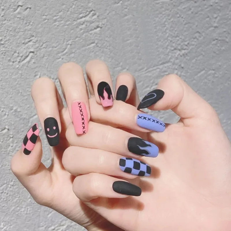 24 шт./компл., панк, огненный узор, поддельные ногти, короткий дизайн, аксессуары для ногтей, балерины, советы для дизайна ногтей, полное покрытие, пресс на ногтях