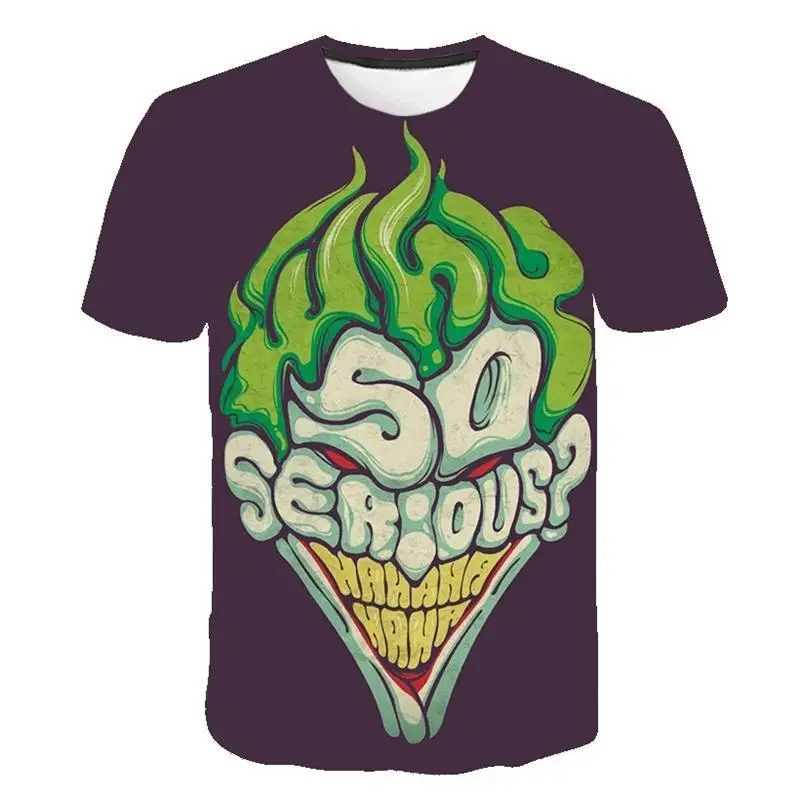 Футболка мужская с 3d принтом, забавная тенниска с круглым вырезом, с лицом Джокера, клоуна, с коротким рукавом, для косплея покемона, отряд самоубийц