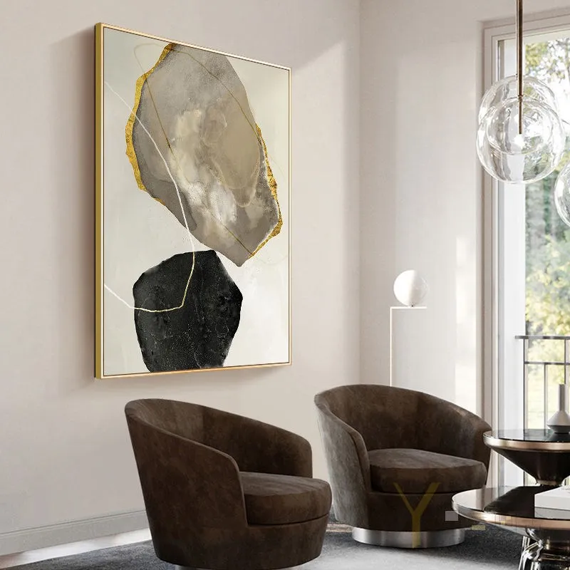 Абстрактные черные Акварельные картины на холсте постер с золотыми линиями скандинавские настенные картины на холсте для гостиной домашний декор