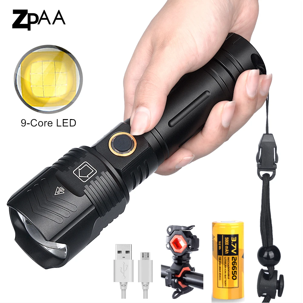 2021 новые XHP120 9-core светодиодный вспышка светильник Мощный USB Перезаряжаемые XHP50 XHP100 фонарь 18650 26650 передний велосипедный фонарь ручной светильник