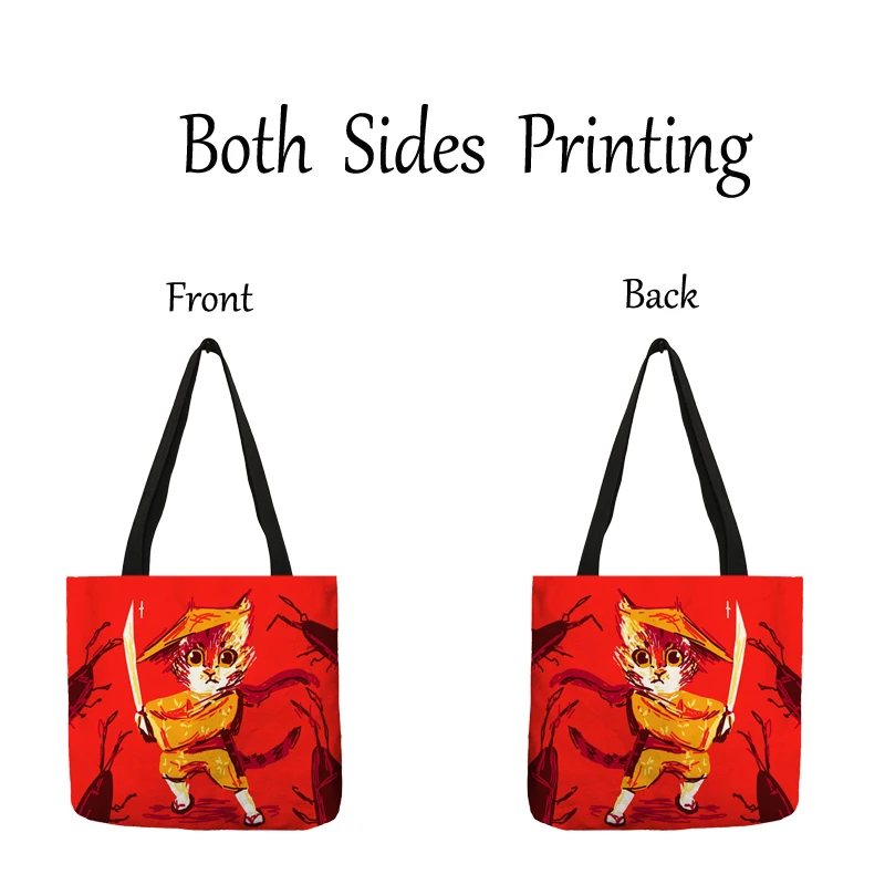Модные фирменные сумки для женщин, дизайнерские сумки, Японские ниндзя воины, принт кота, экологичные сумки через плечо для покупок, складные сумки