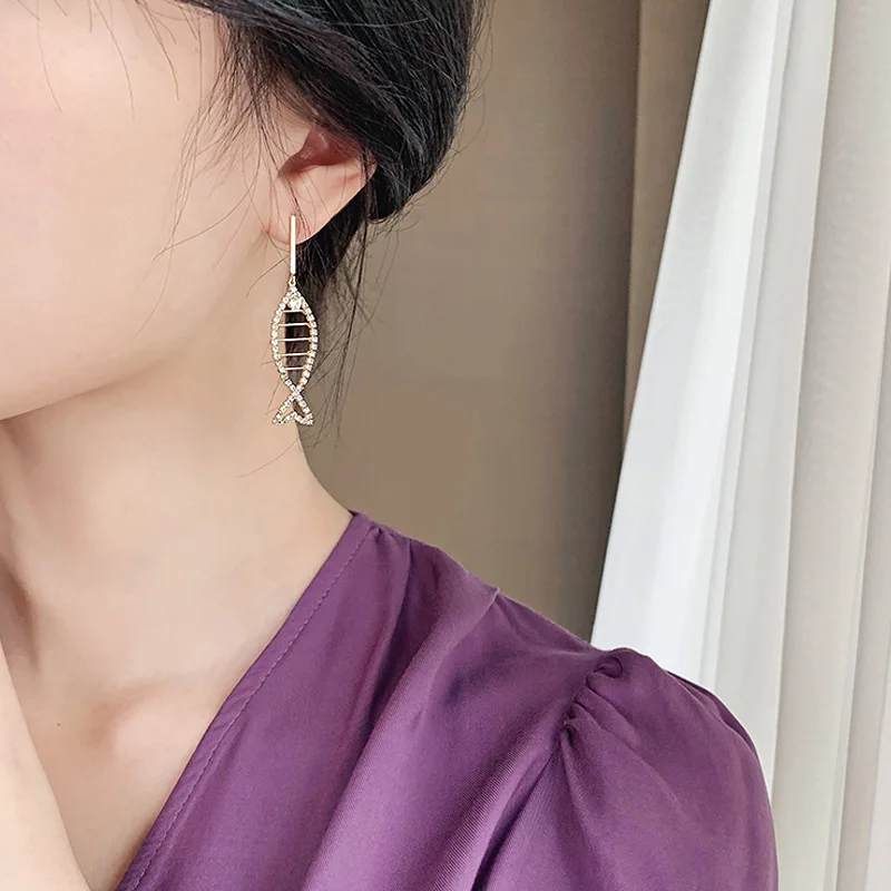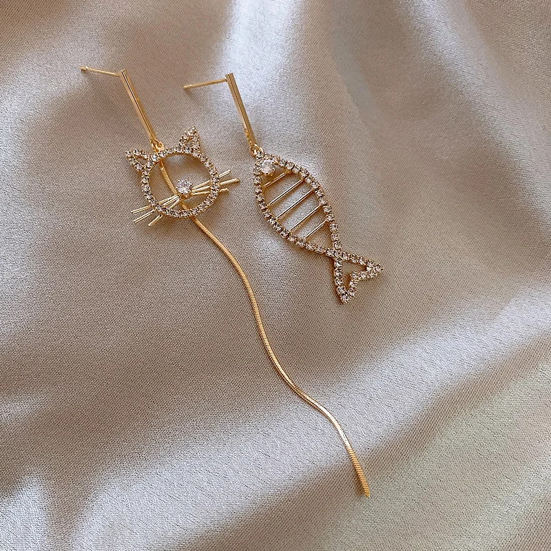 Корейские серьги-гвоздики, модные ювелирные изделия, кошка, маленькая рыба, асимметричные темпераментные серьги для женщин, оптовая продажа
