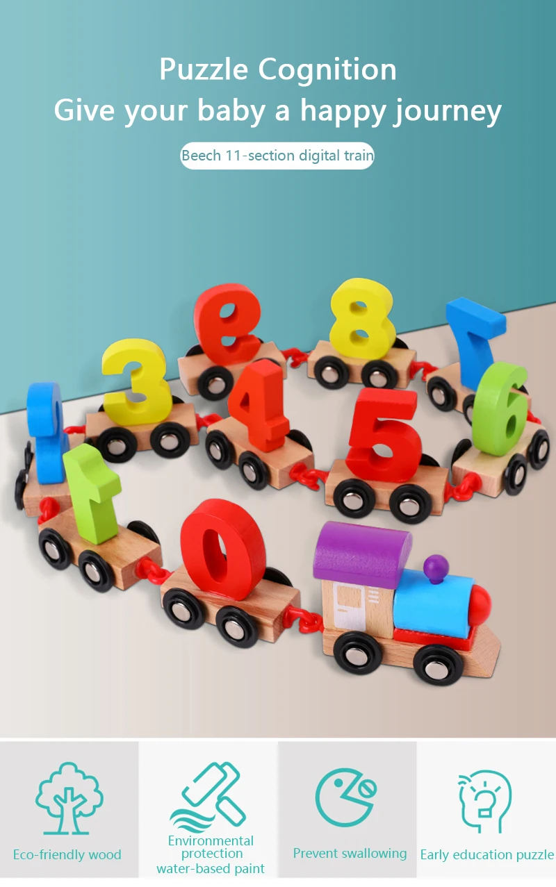 Поезд Монтессори Деревянные игрушки Игрушки для маленьких детей от 1 года до 2 пары брюк для детей 4 лет математические числа деревянные цифровые обучающие игры для мальчиков и девочек, подарок