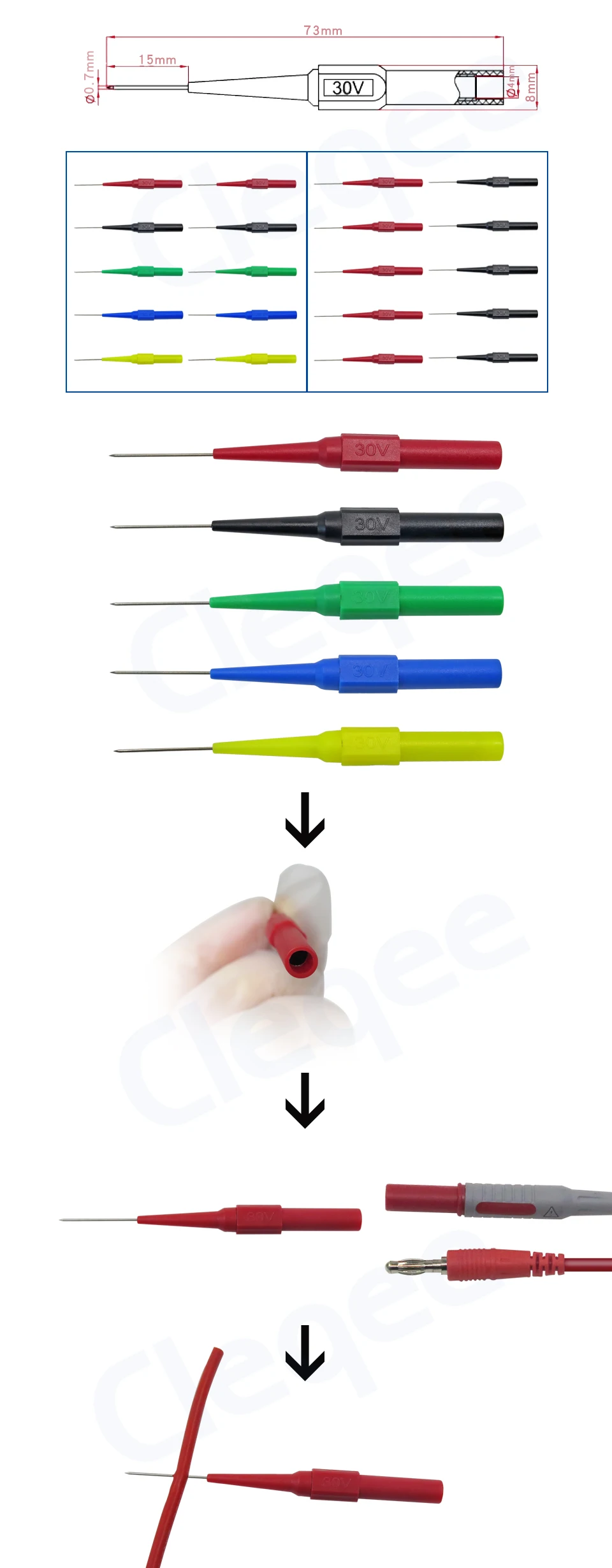 Cleqee P5007 10 шт. изоляционная игла для пирсинга Неразрушающий мультиметр тестовые щупы красныйчерный