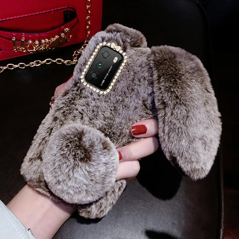 Чехол POCO X3 M3, милый пушистый чехол с кроликом для Xiaomi Redmi Note 10, 11 Pro, 11T, искусственный плюшевый чехол из меха, чехол для Redmi 9A, 9C, Note 9 Pro, 8, 7, 6