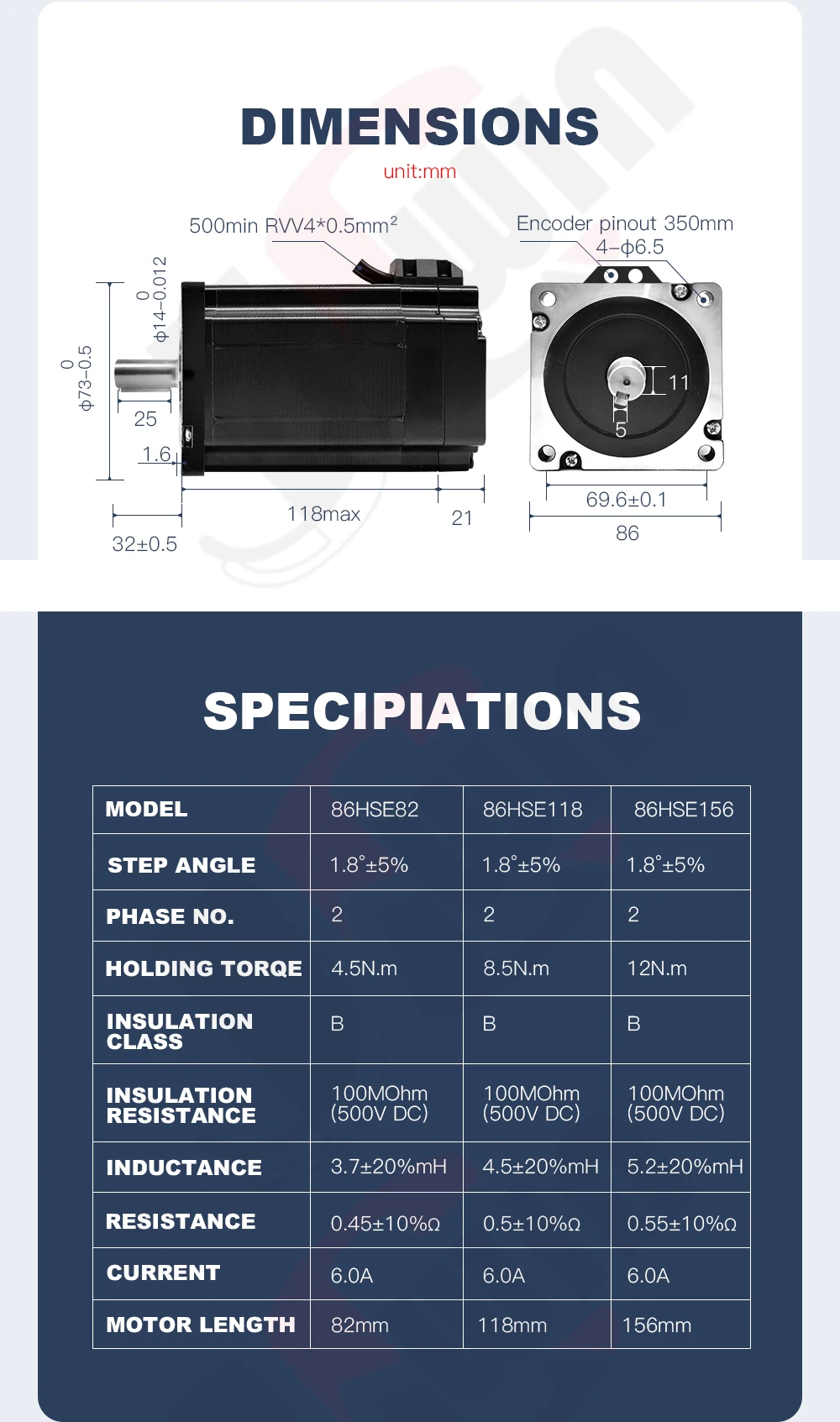 Склад в РоссииЕС! Комплект двигателя с замкнутым контуром Nema34: Гибридный Серводвигатель 12N 8,5n 4,5n с драйвером HBS860HHBS86H + плата MACH3
