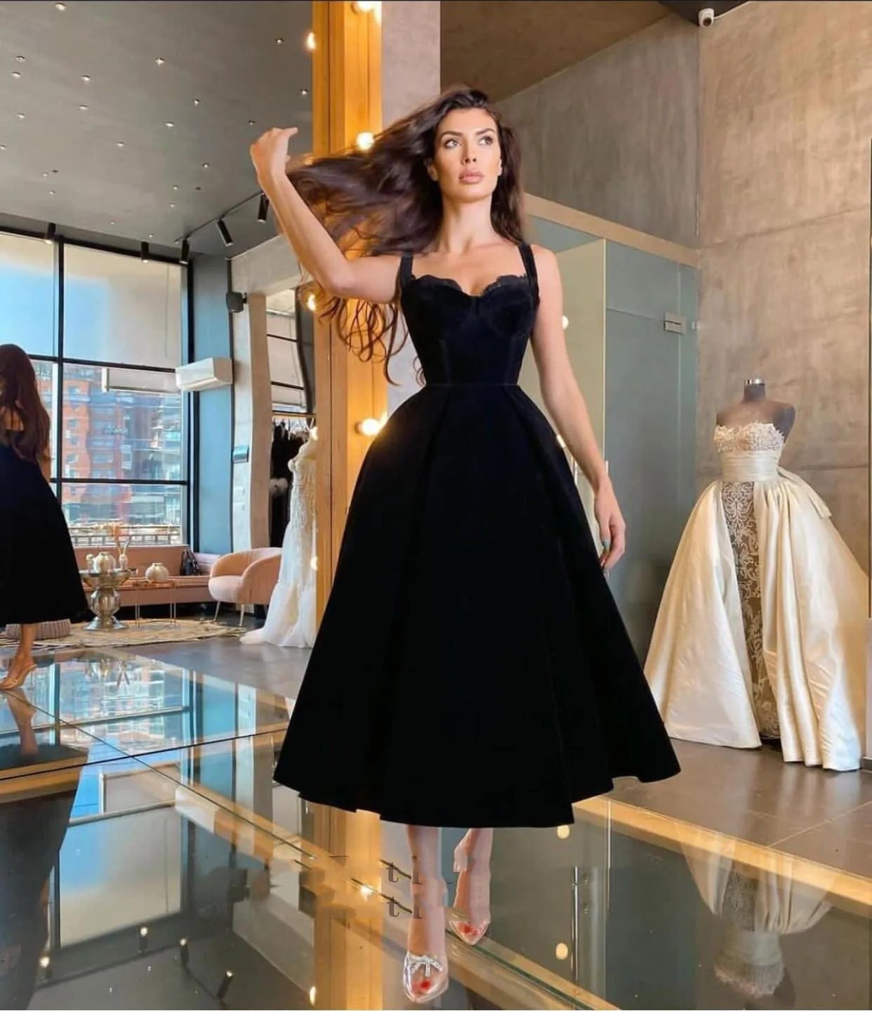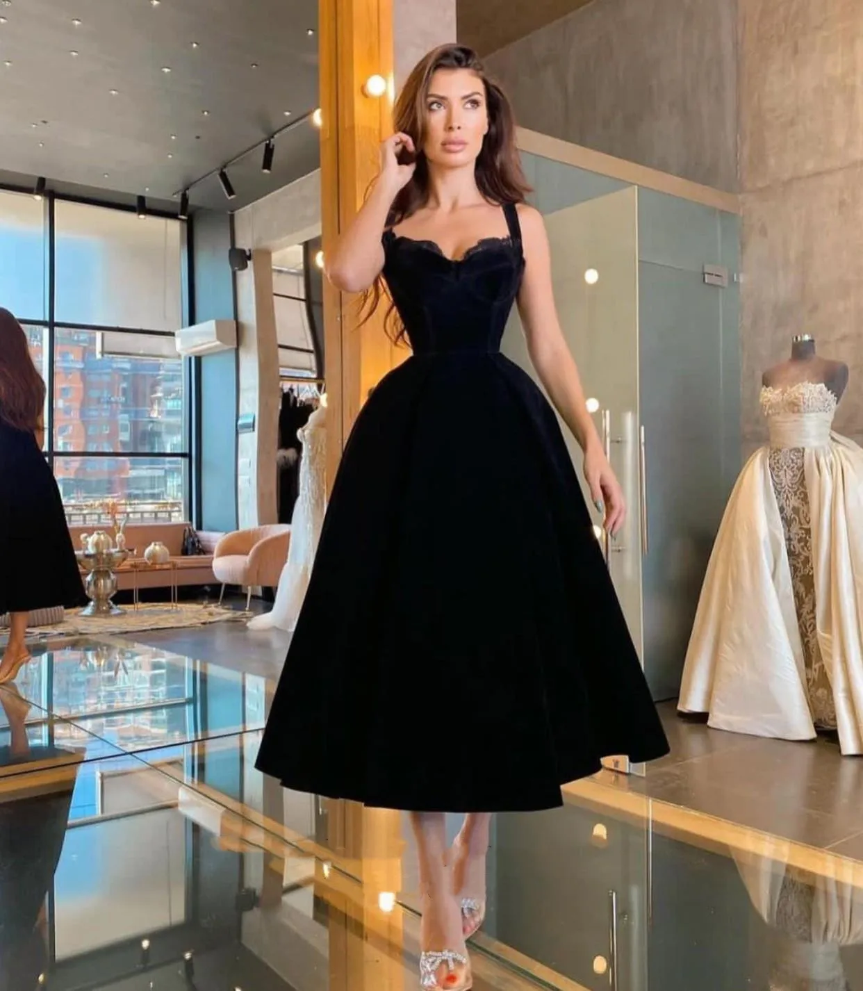 Простые черные велюровые вечерние платья, короткие платья с лямкой на шее для выпускного вечера, платья длиной ниже колена для особых случаев, 2022