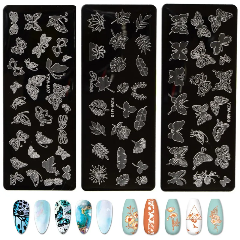 Трафареты для стемпинга ногтей, с изображением цветов, бабочек, сне...