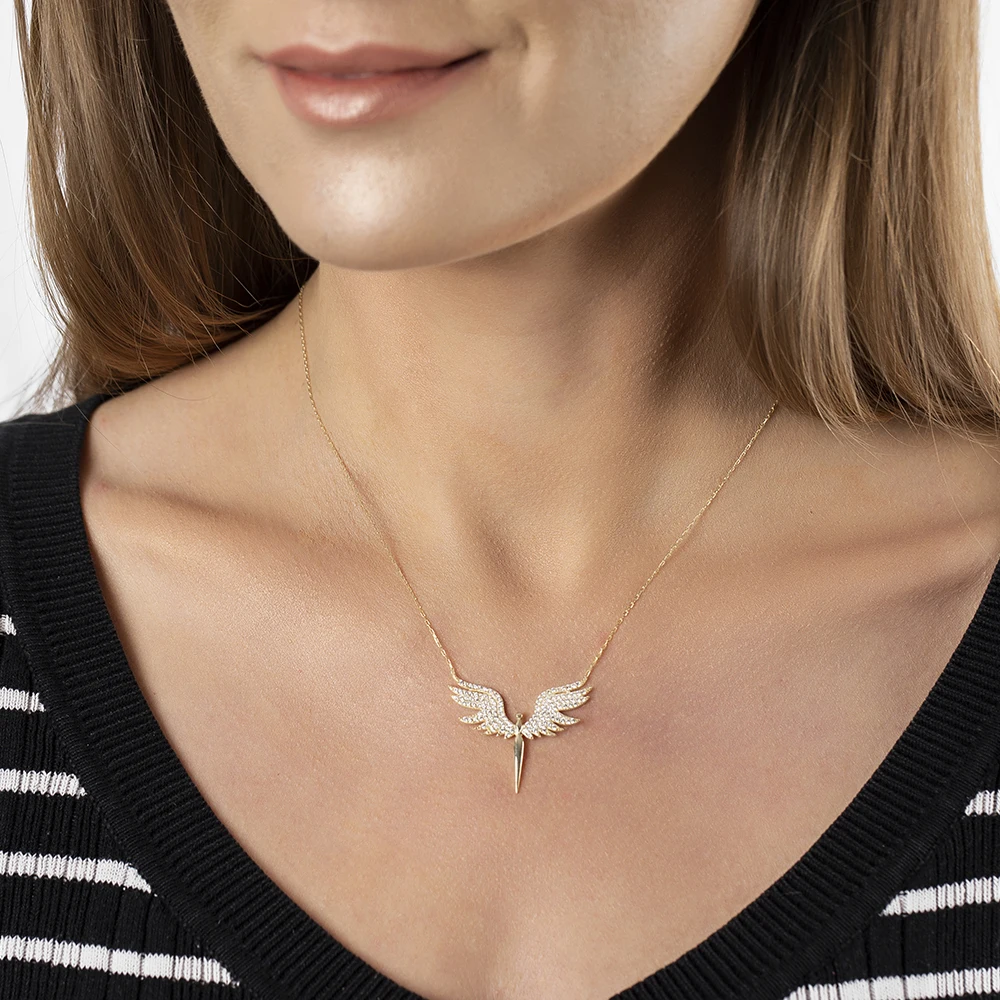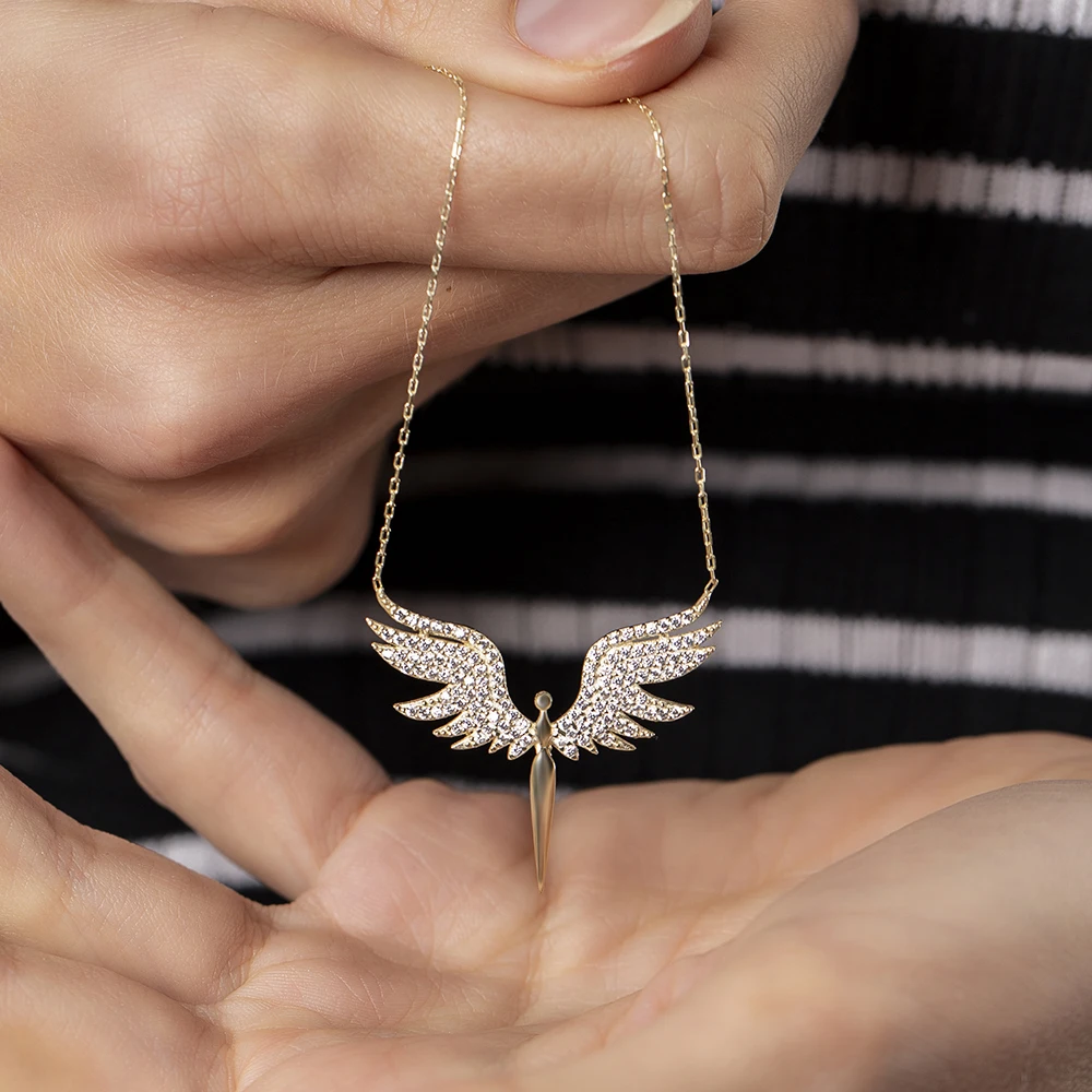 Ожерелье женское из серебра 925 пробы с камнем Майкла Ангела из циркония, Драгоценная Подвеска