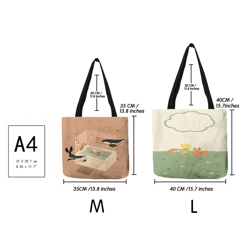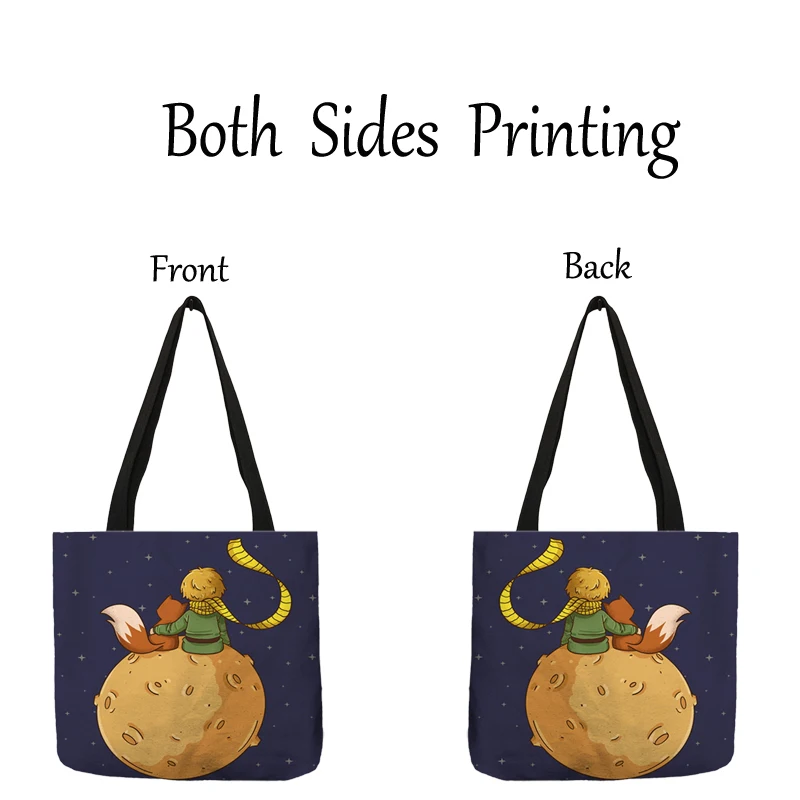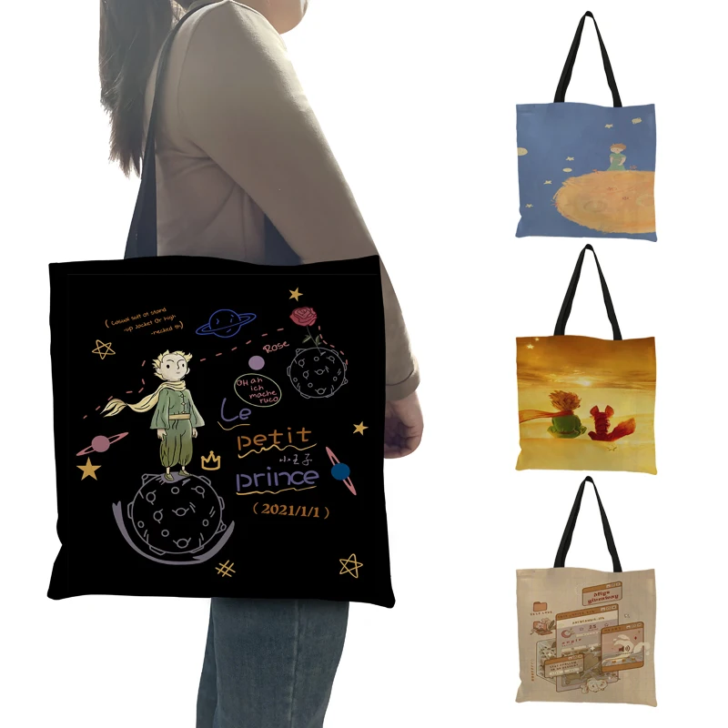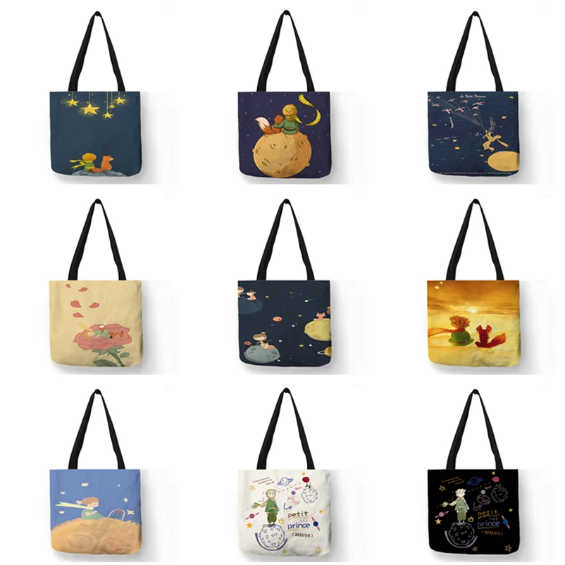 Женская сумка-шоппер с мультяшным принтом Le Petit Prince, принт лисы, розы, дамская сумка на плечо, многоразовые сумки для покупок, подарочные сумки