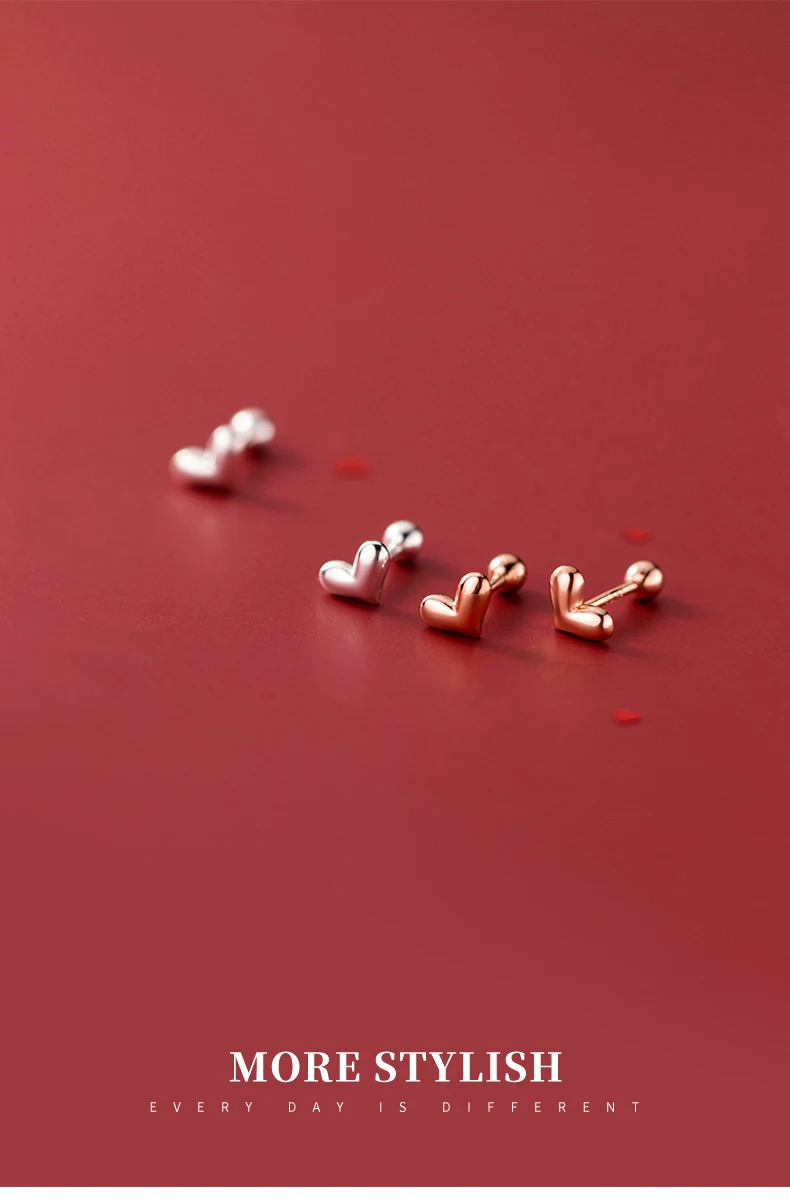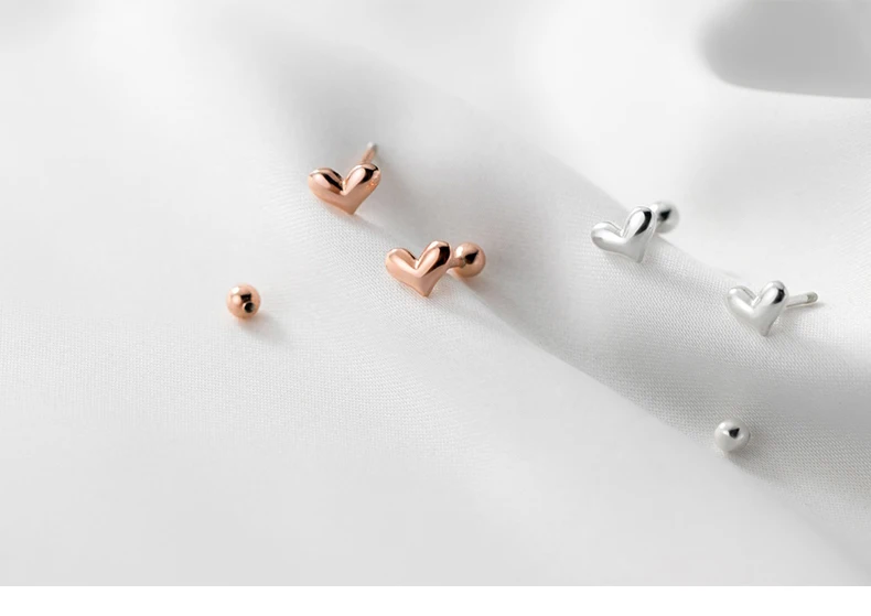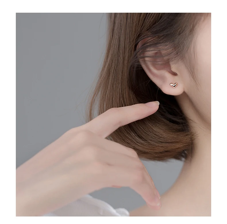 Название: милые серьги-гвоздики в форме сердца; 925 пробы серебряные ювелирные изделия; Серебряные серьги для женщин