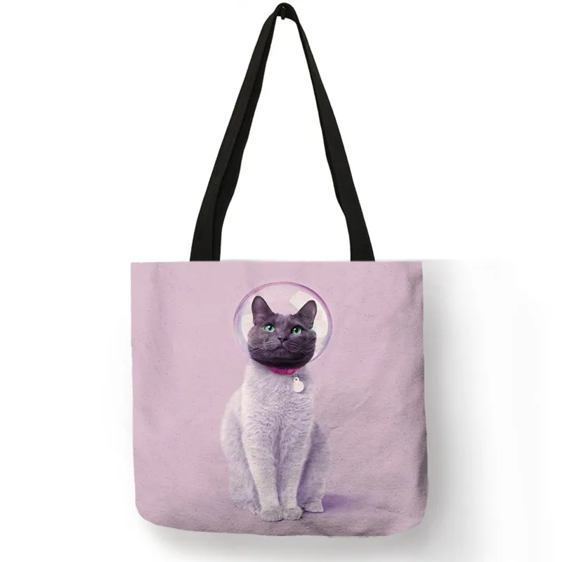 Сумка-тоут женская, из льна, с принтом в виде кошки