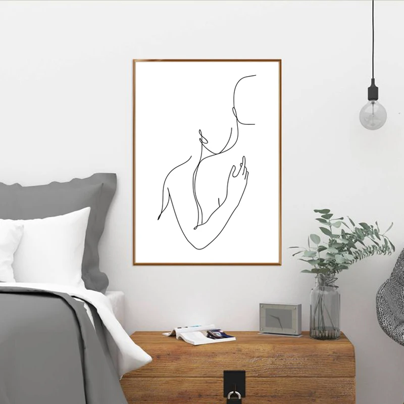 Абстрактная пара тела обнимашки линии рисунок принты любовь Романтический плакат черный белый минималистский декор для спальни настенная живопись на холсте
