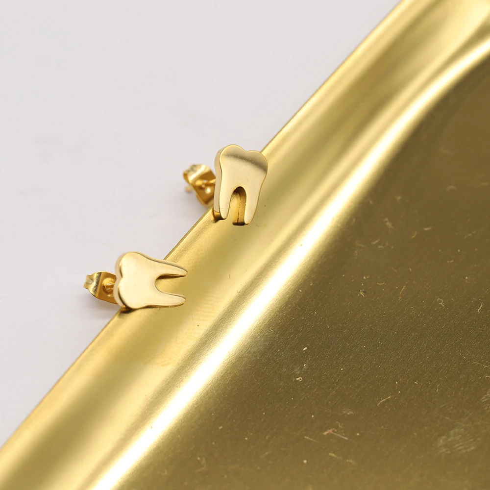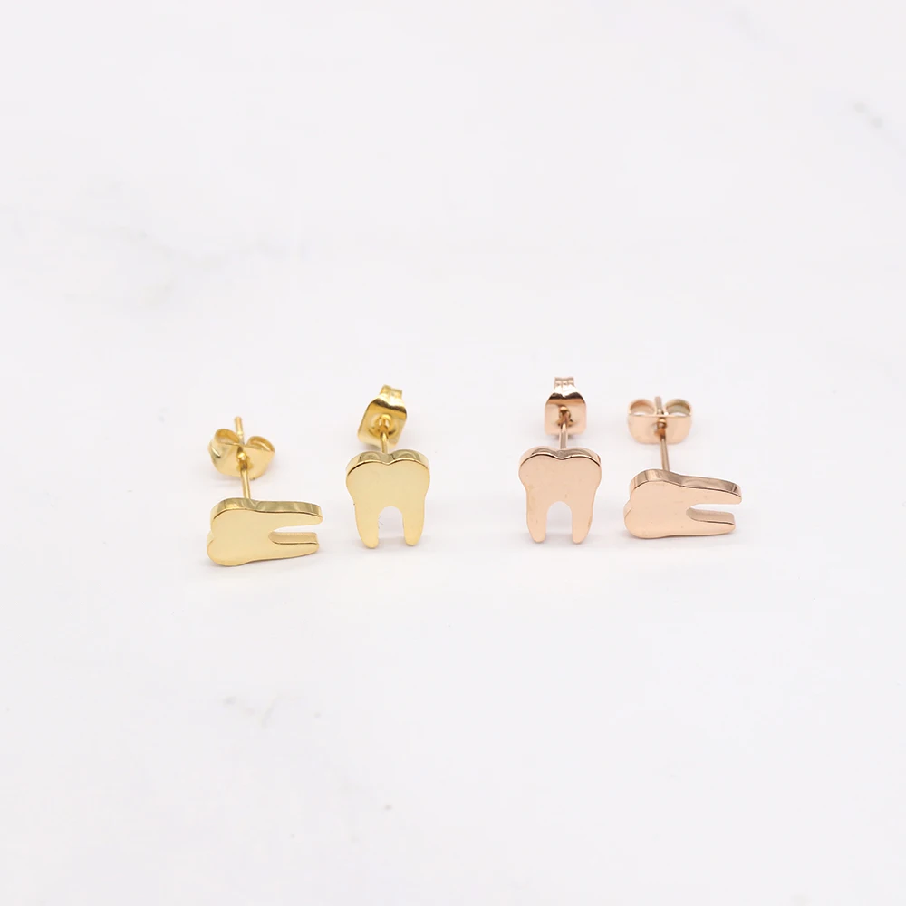 Серьги-гвоздики из нержавеющей стали с золотыми зубьями, ювелирные изделия из розового золота, серьги с зубьями для детей, стоматологов, минимализм, бижутерия, подарок для Него