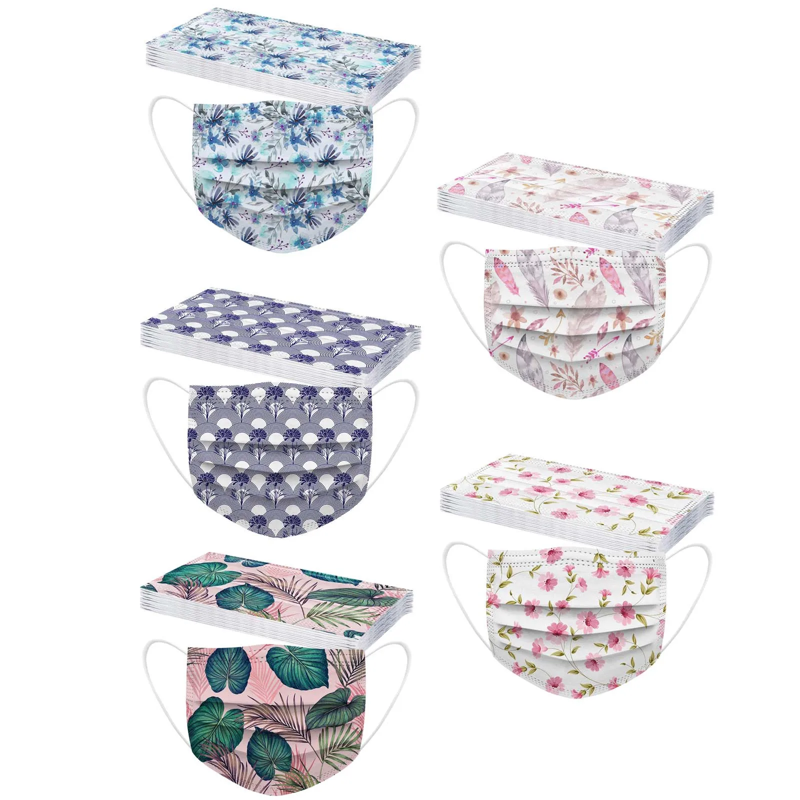 Маски одноразовые с цветочным принтом унисекс, 3-слойные, для лица, 10203050 шт.